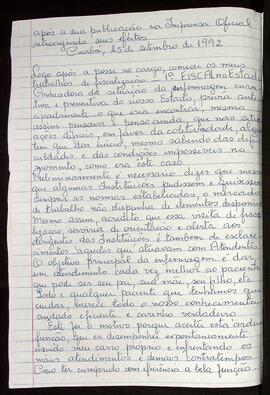 CADERNO de Adelaide de Almeida Orro, produzido para registros manuscritos de memórias e transcrições de documentos acumulados acerca da Escola Estadual de 1º e 2º Grau Presidente Médici – Curso Auxiliar de Enfermagem Dr Mario Corrêa da Cosa.