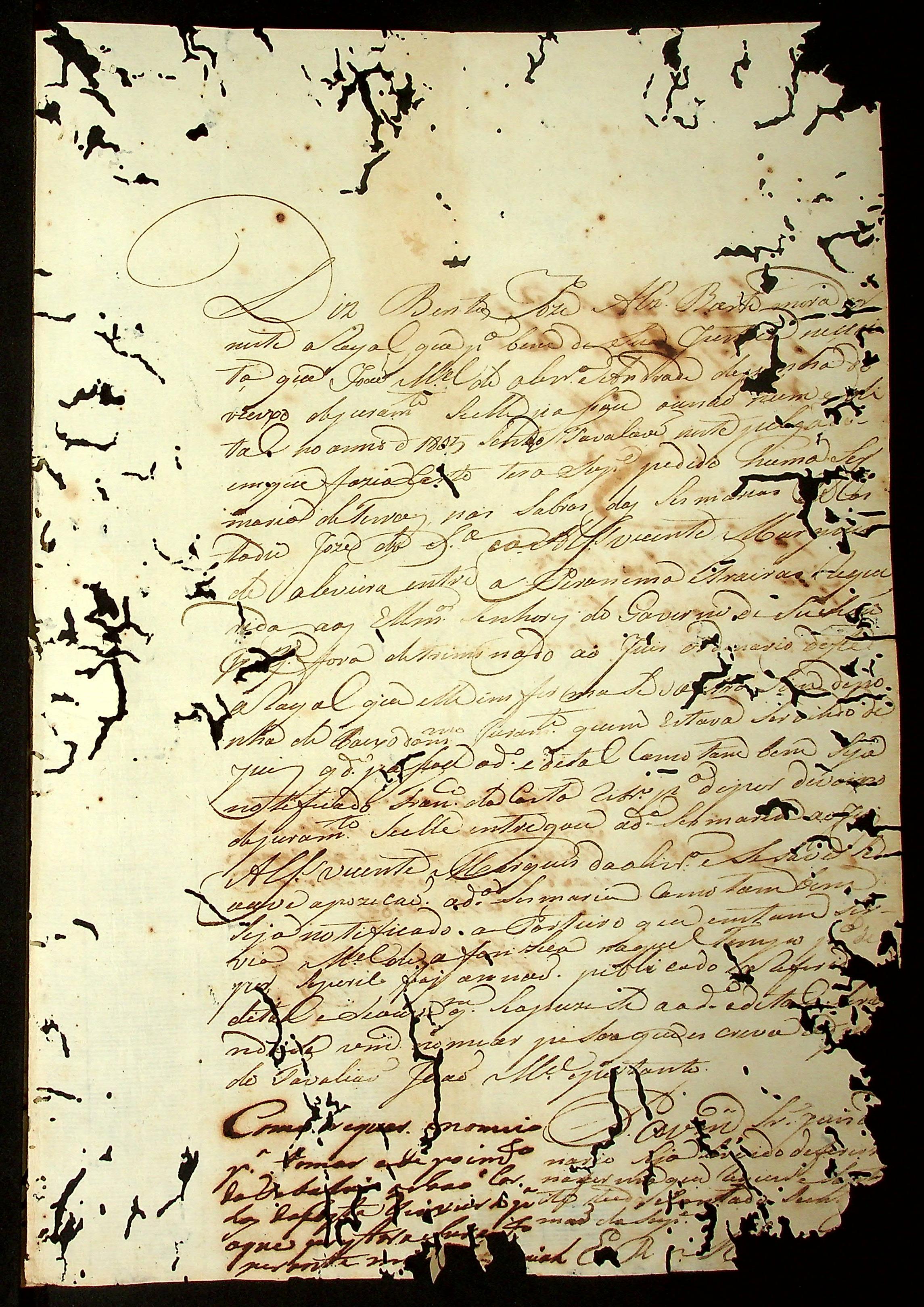 REQUERIMENTO de Bento José Alves Bastos ao Governador e Capitão-General da Capitania de Mato Grosso João Carlos Augusto D' Oeynhausen e Gravemberg.