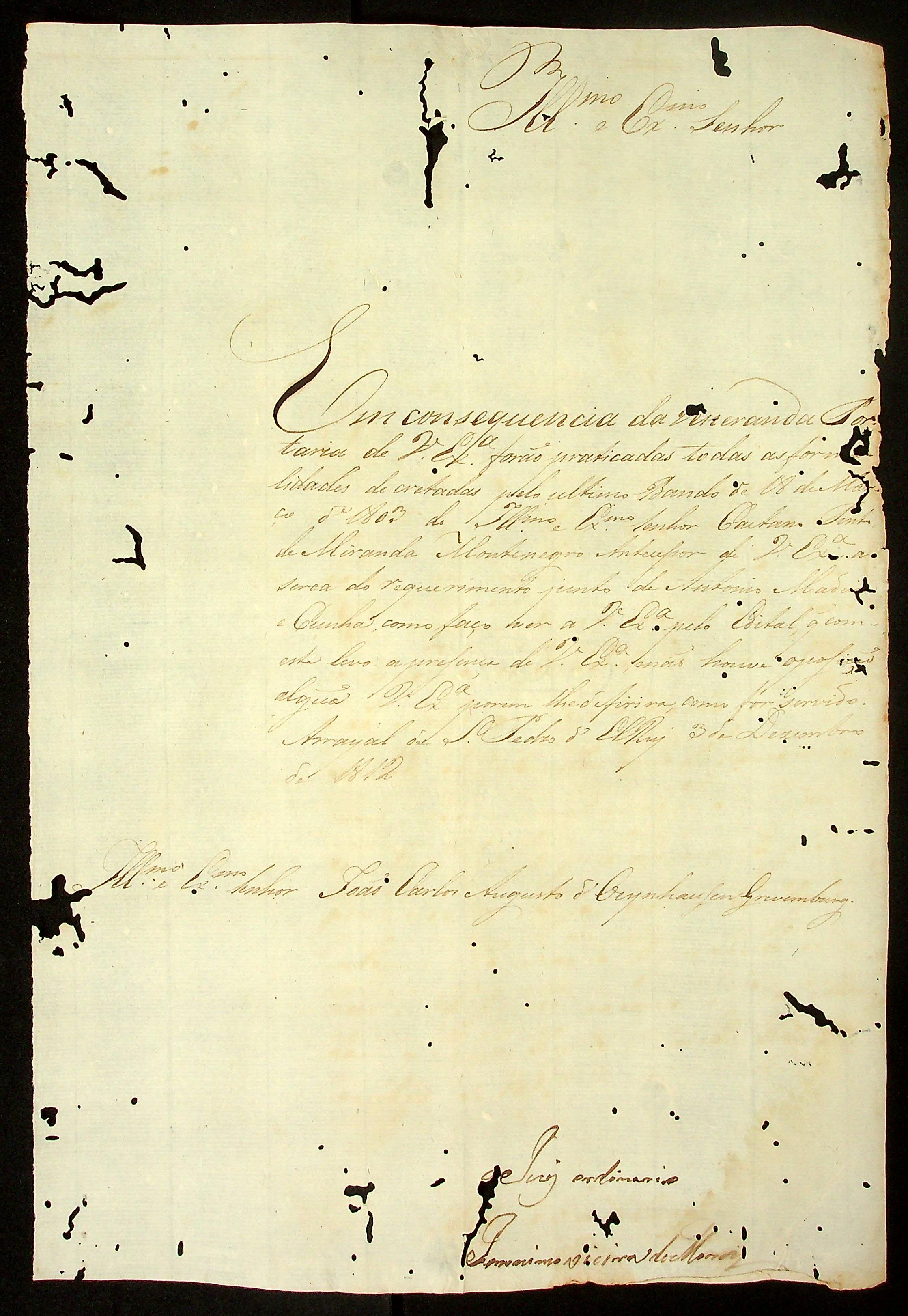 REQUERIMENTO de Antônio Madeira da Cunha ao Governador e Capitão-General da Capitania de Mato Grosso João Carlos Augusto D' Oeynhausen e Gravemberg.