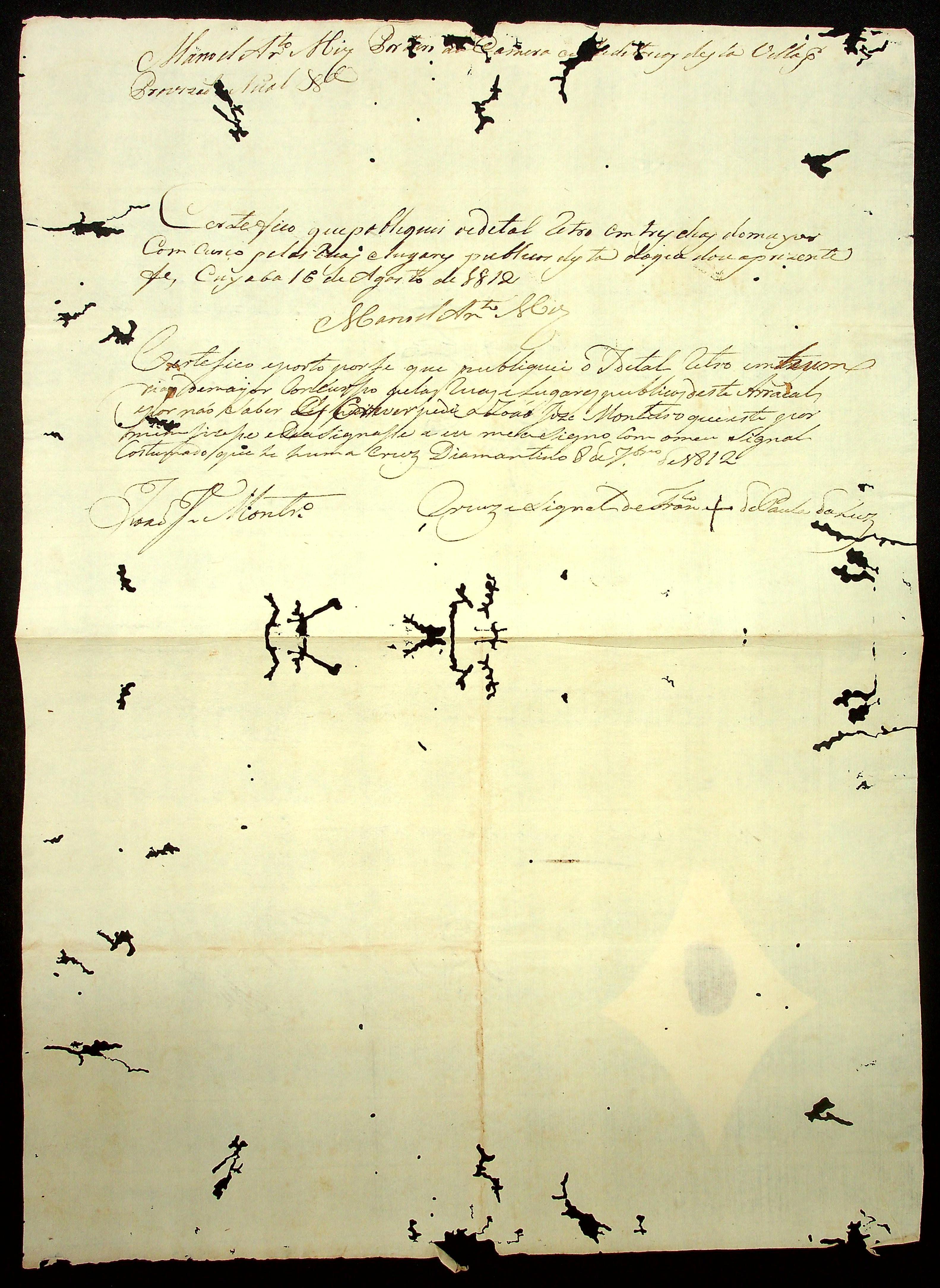 REQUERIMENTO do Alferes Estevão Alves Correa ao Governador e Capitão-General da Capitania de Mato Grosso João Carlos Augusto D' Oeynhausen e Gravemberg.