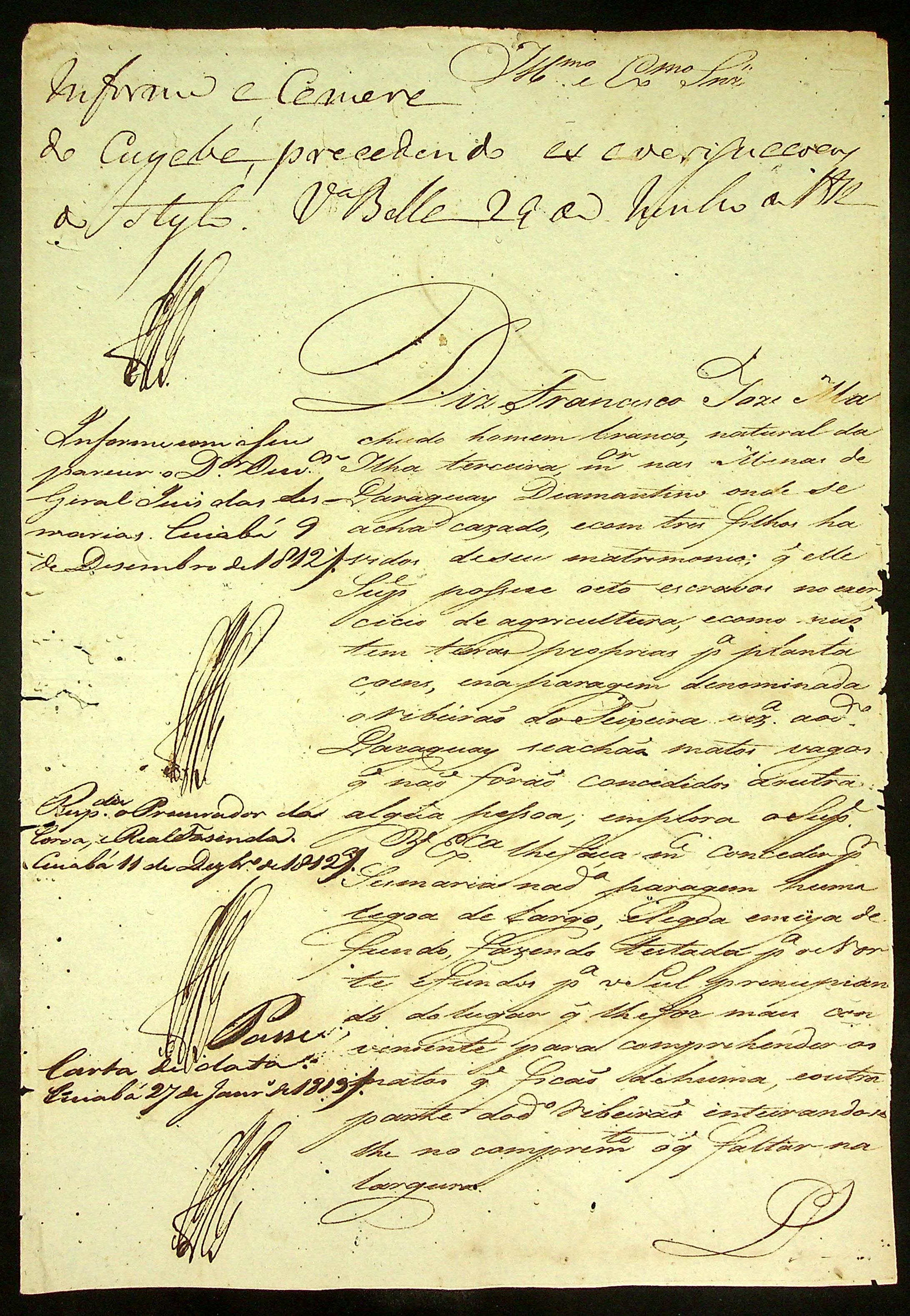 REQUERIMENTO de Francisco José Machado ao Governador e Capitão-General da Capitania de Mato Grosso João Carlos Augusto D' Oeynhausen e Gravemberg.