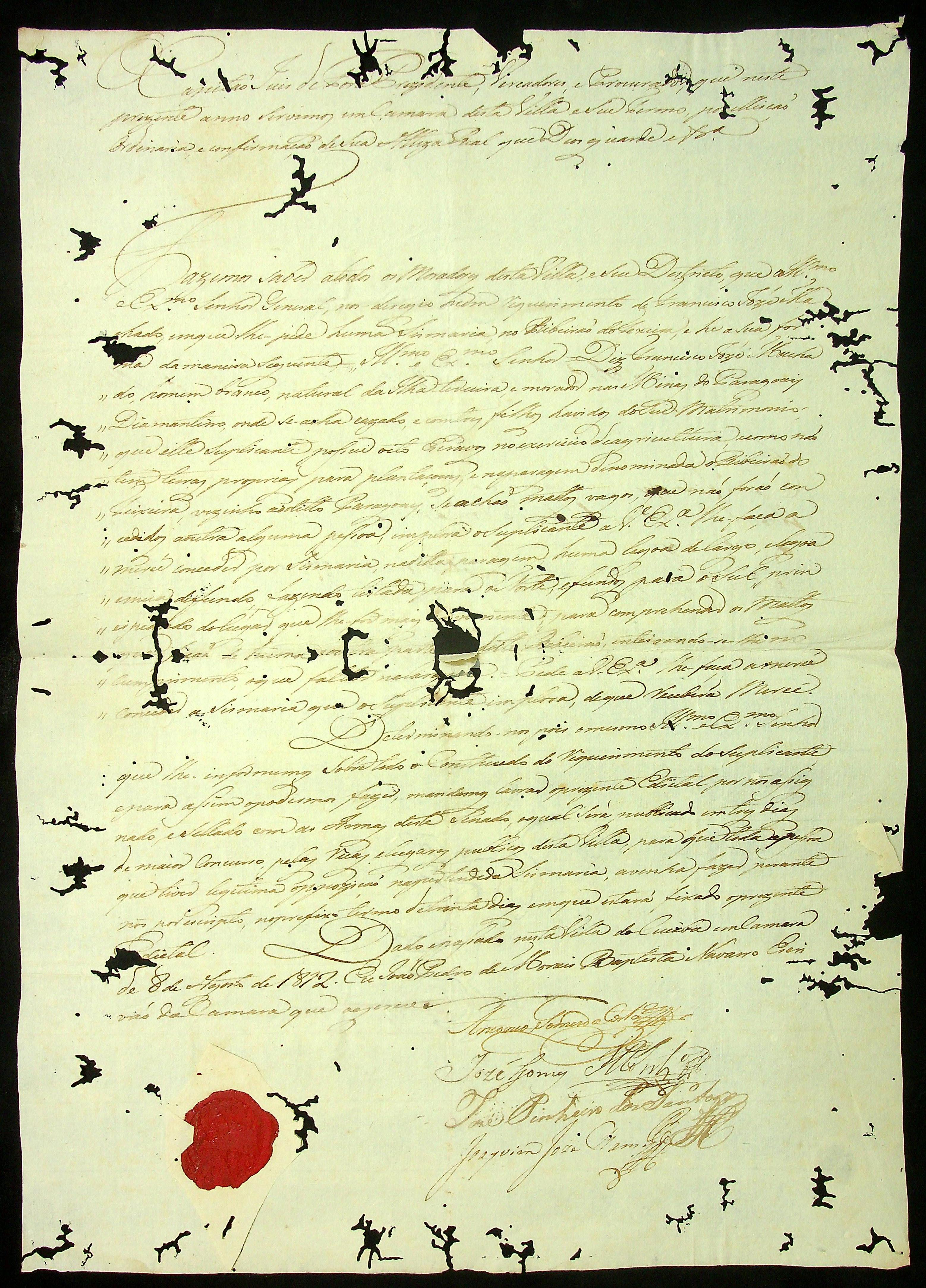 REQUERIMENTO de Francisco José Machado ao Governador e Capitão-General da Capitania de Mato Grosso João Carlos Augusto D' Oeynhausen e Gravemberg.