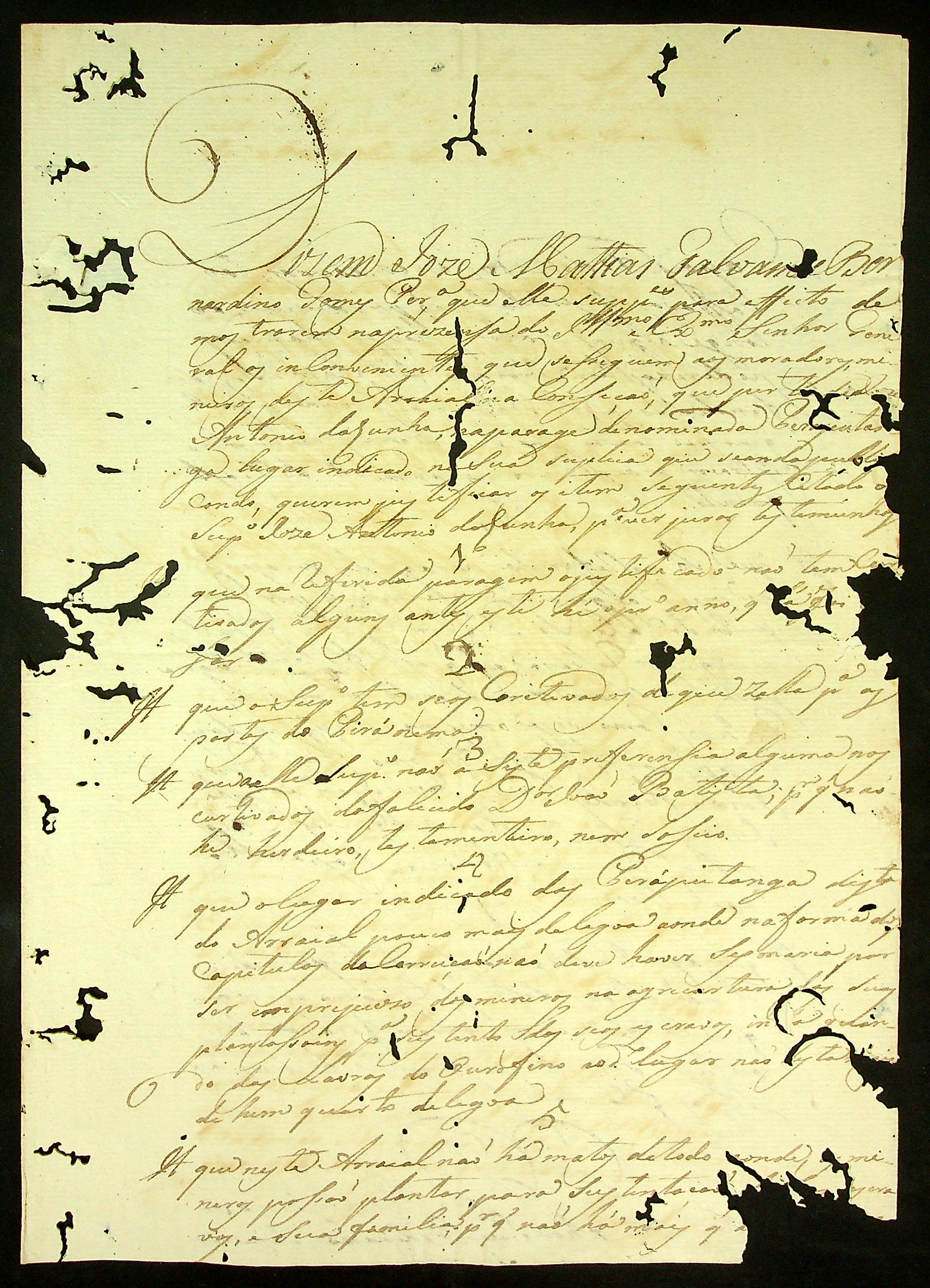 REQUERIMENTO de José Antônio da Cunha ao Governador e Capitão-General da Capitania de Mato Grosso João Carlos Augusto D' Oeynhausen e Gravemberg.