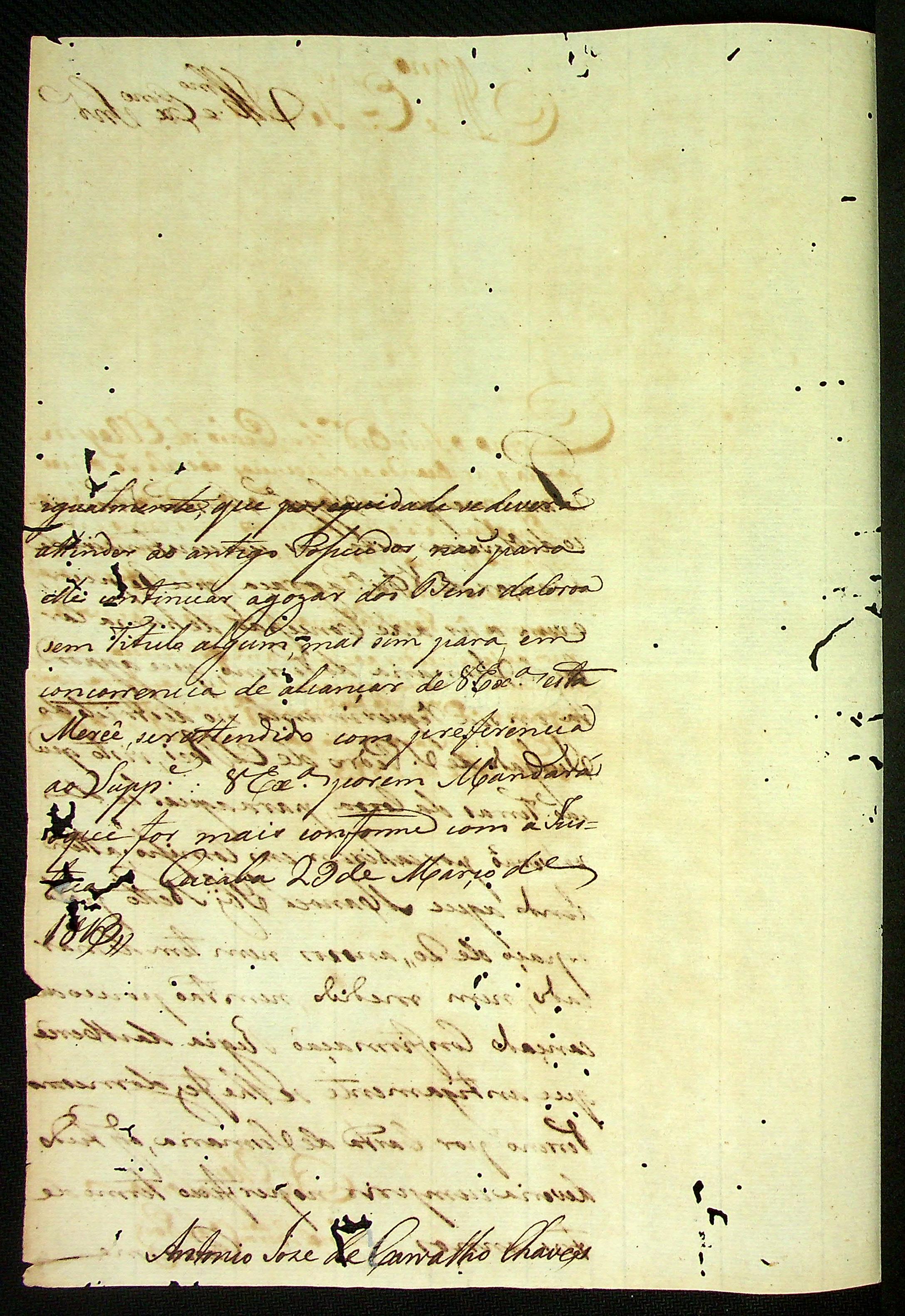 REQUERIMENTO de Simeão Francisco de Oliveira ao Governador e Capitão-General da Capitania de Mato Grosso João Carlos Augusto D' Oeynhausen e Gravemberg.