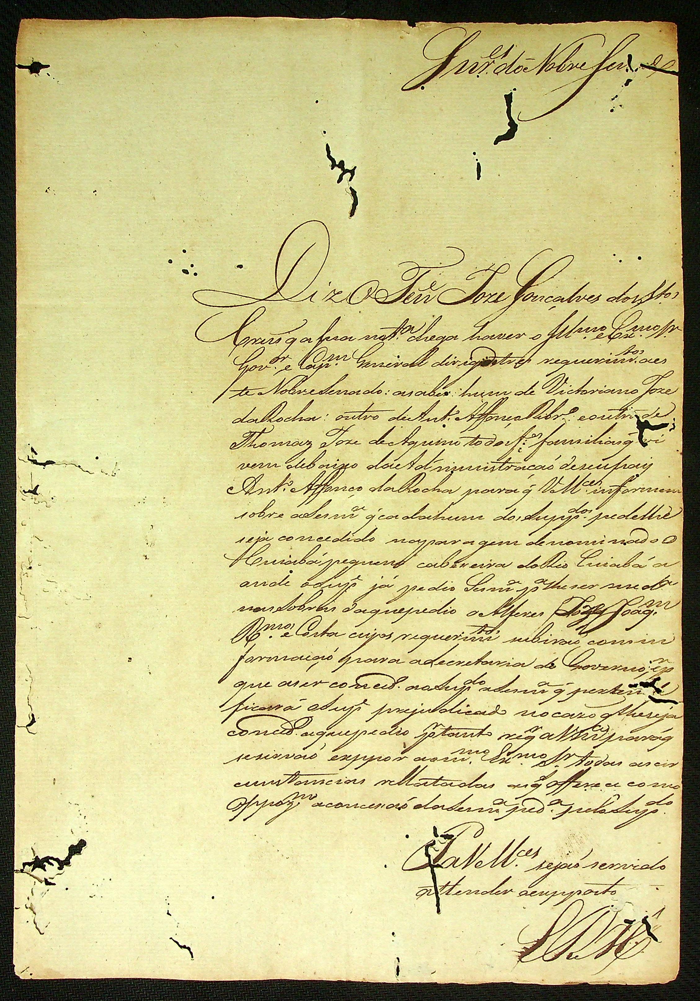 REQUERIMENTO de Thomas José de Aquino ao Governador e Capitão-General da Capitania de Mato Grosso João Carlos Augusto D' Oeynhausen e Gravemberg.