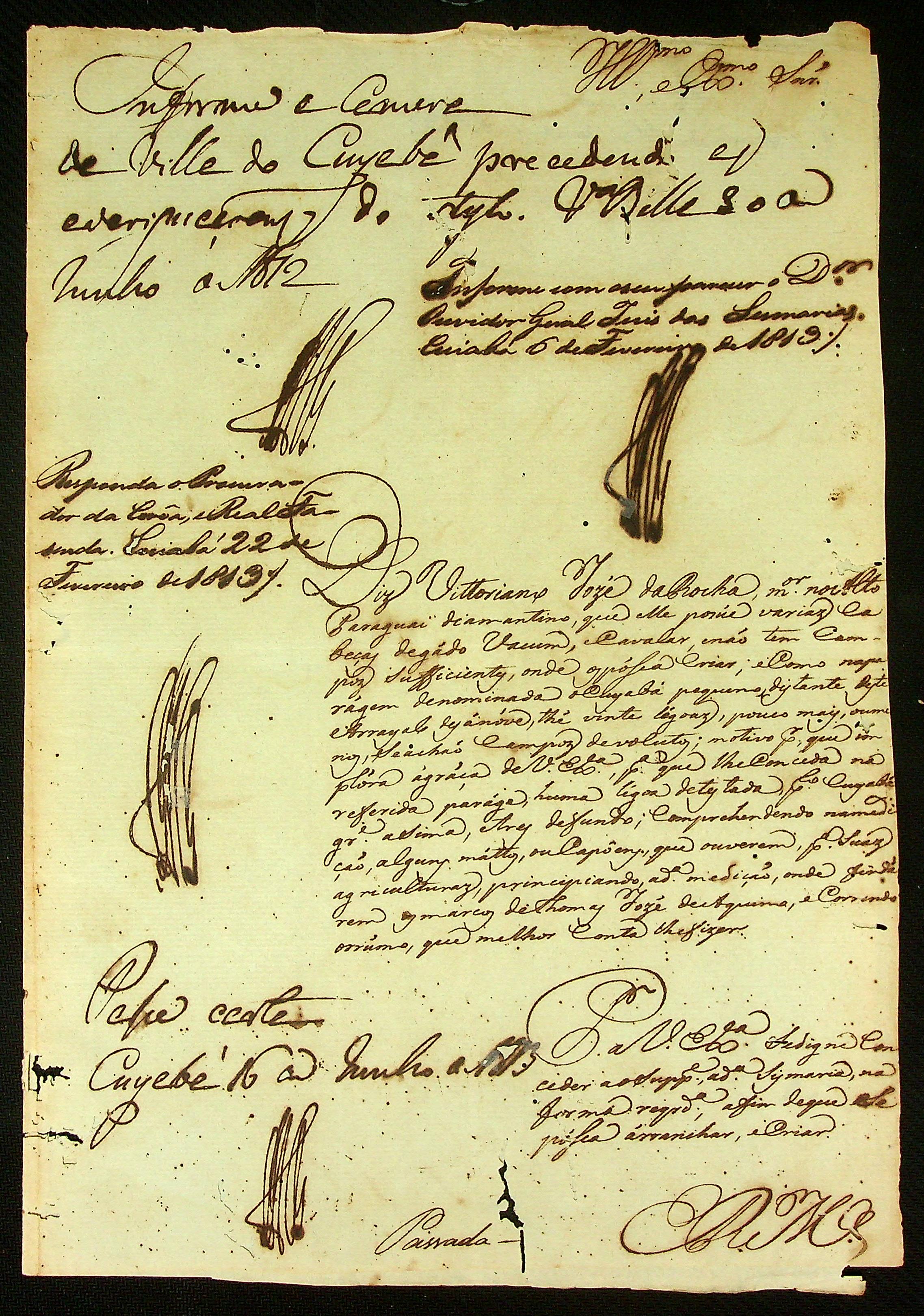 REQUERIMENTO de Vitoriano José da Rocha ao Governador e Capitão-General da Capitania de Mato Grosso João Carlos Augusto D' Oeynhausen e Gravemberg.