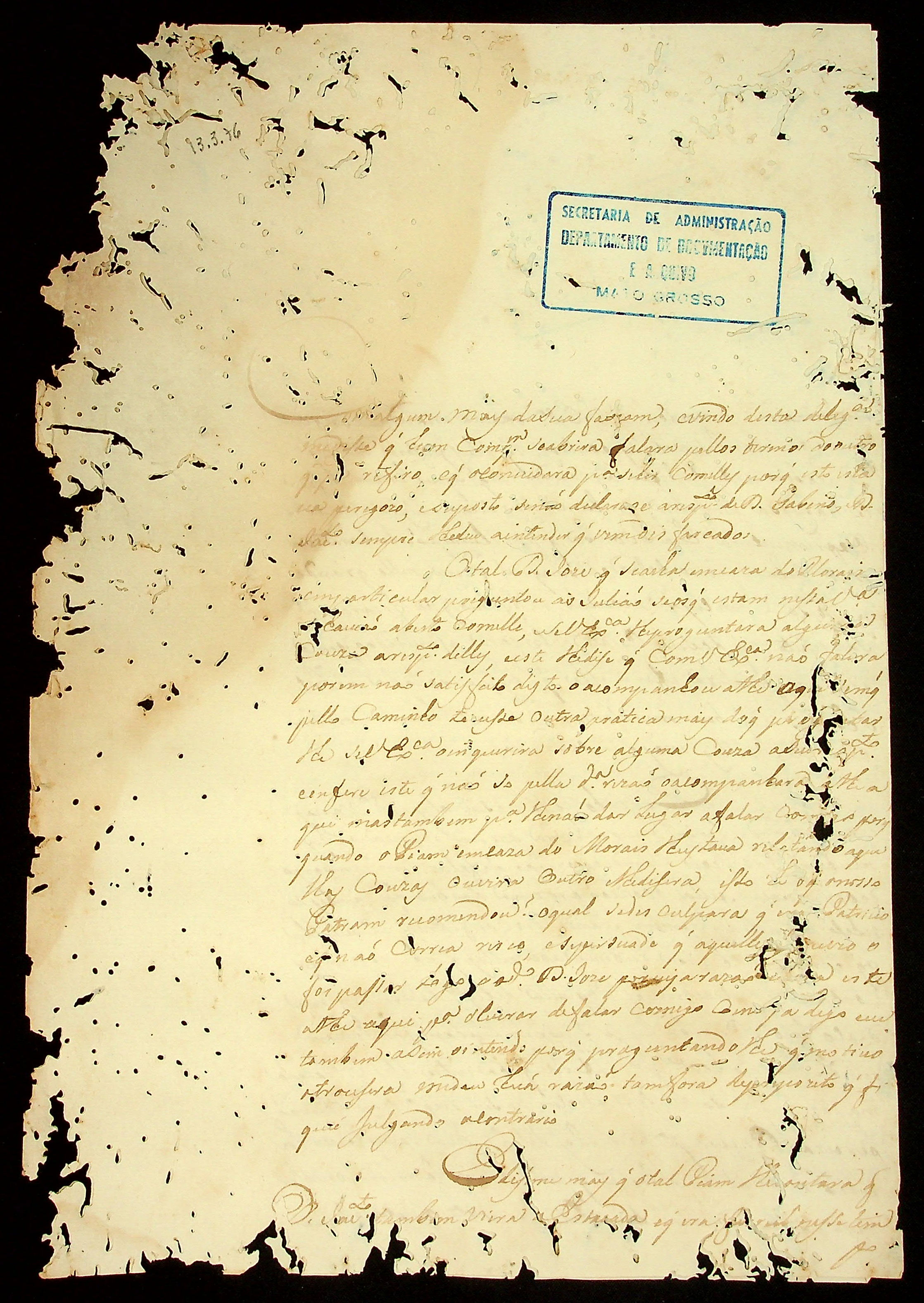 CARTA do [Capitão Antônio Pinto do Rego Carvalho] ao Governador e Capitão-General da Capitania de Mato Grosso Luiz de Albuquerque de Mello Pereira e Cáceres.