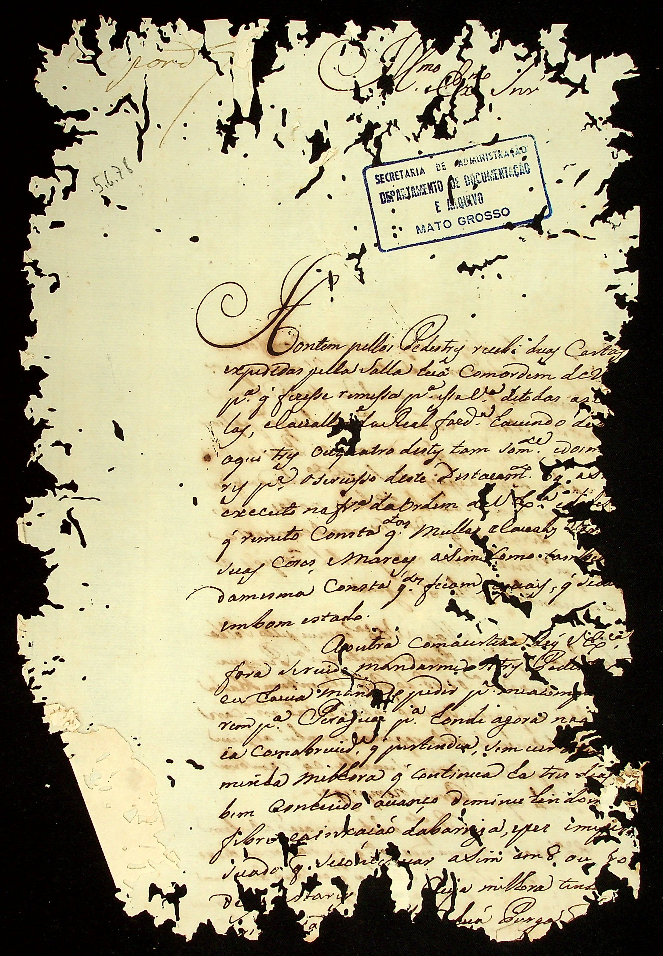 CARTA de […] ao Governador e Capitão-General da Capitania de Mato Grosso Luiz de Albuquerque de Mello Pereira e Cáceres.