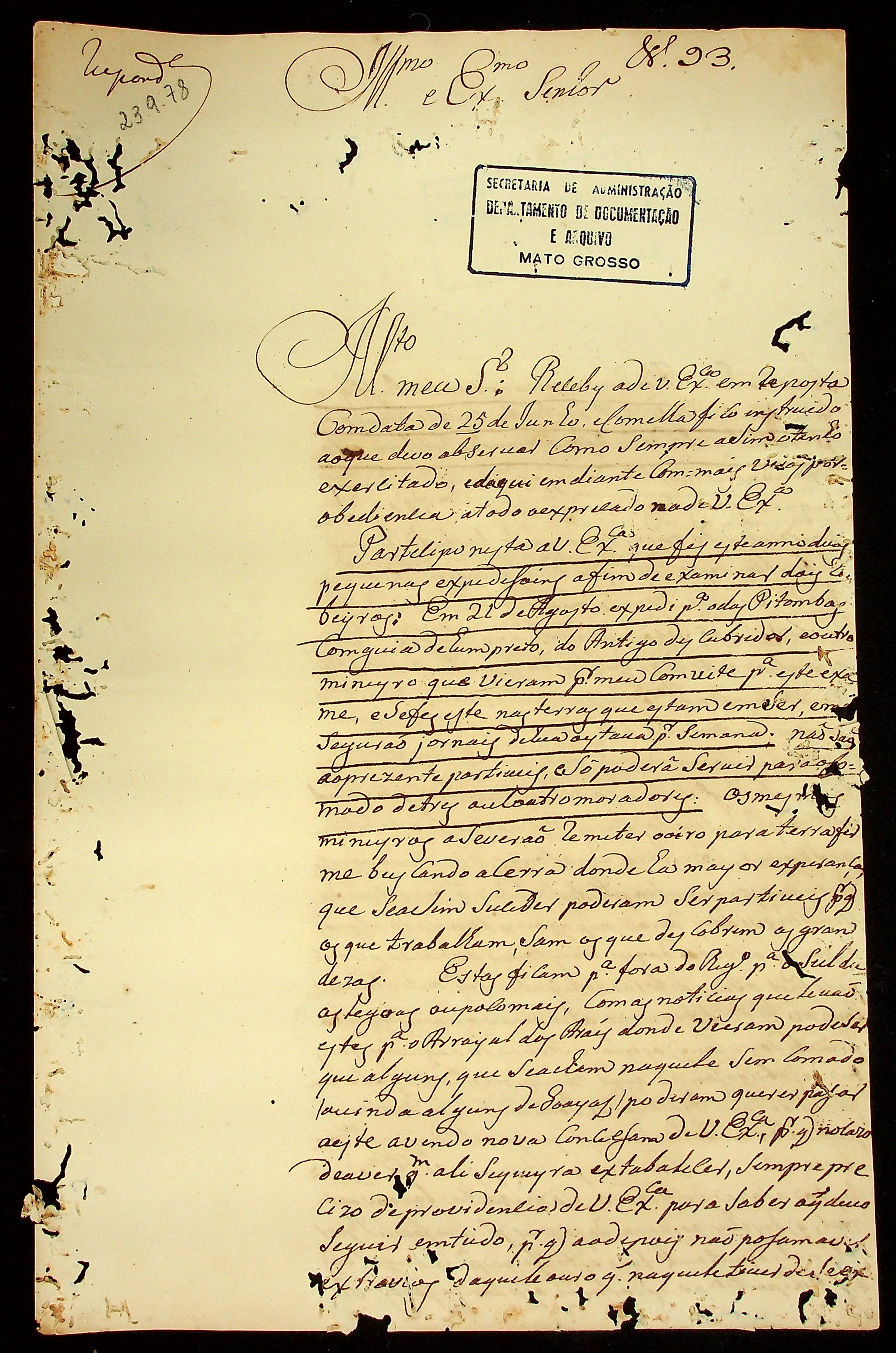 CARTA do [Capitão] Antônio Lopes da Silva ao Governador e Capitão-General da Capitania de Mato Grosso Luiz de Albuquerque de Mello Pereira e Cáceres.