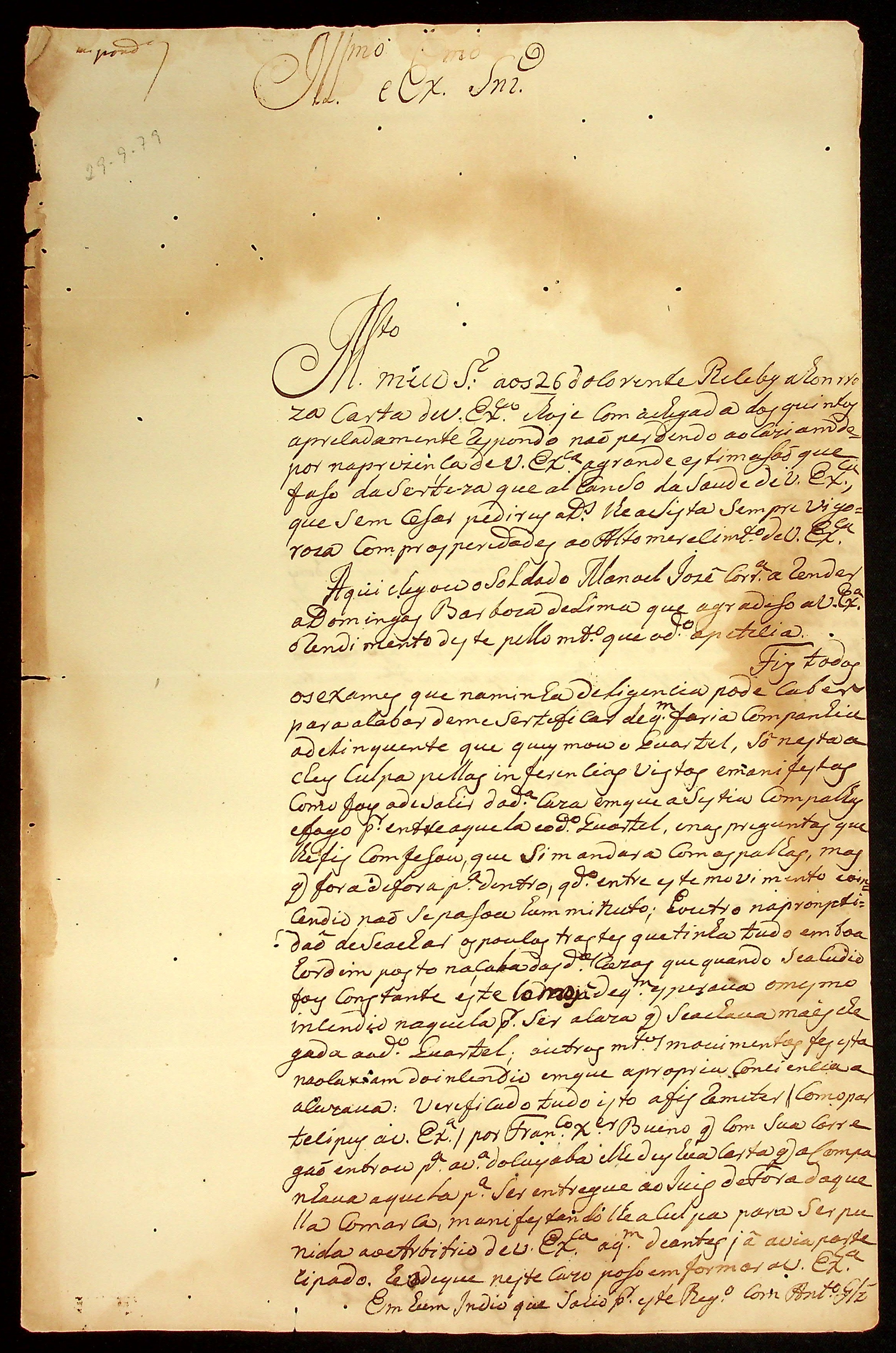 CARTA de Antônio Lopes da Silva ao Governador e Capitão-General da Capitania de Mato Grosso Luiz de Albuquerque de Mello Pereira e Cáceres.
