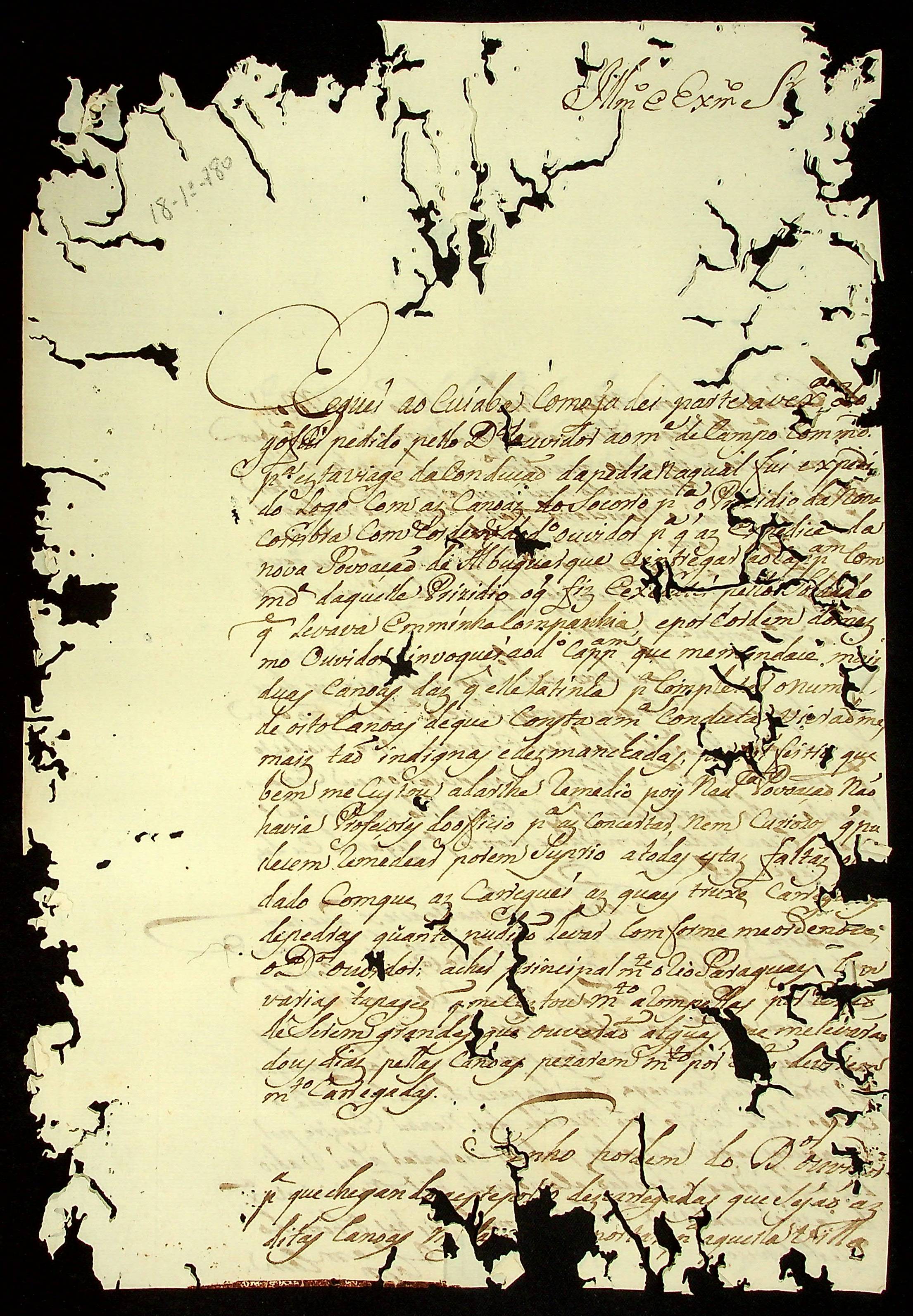 CARTA de Manoel […] ao Governador e Capitão-General da Capitania de Mato Grosso Luiz de Albuquerque de Mello Pereira e Cáceres.