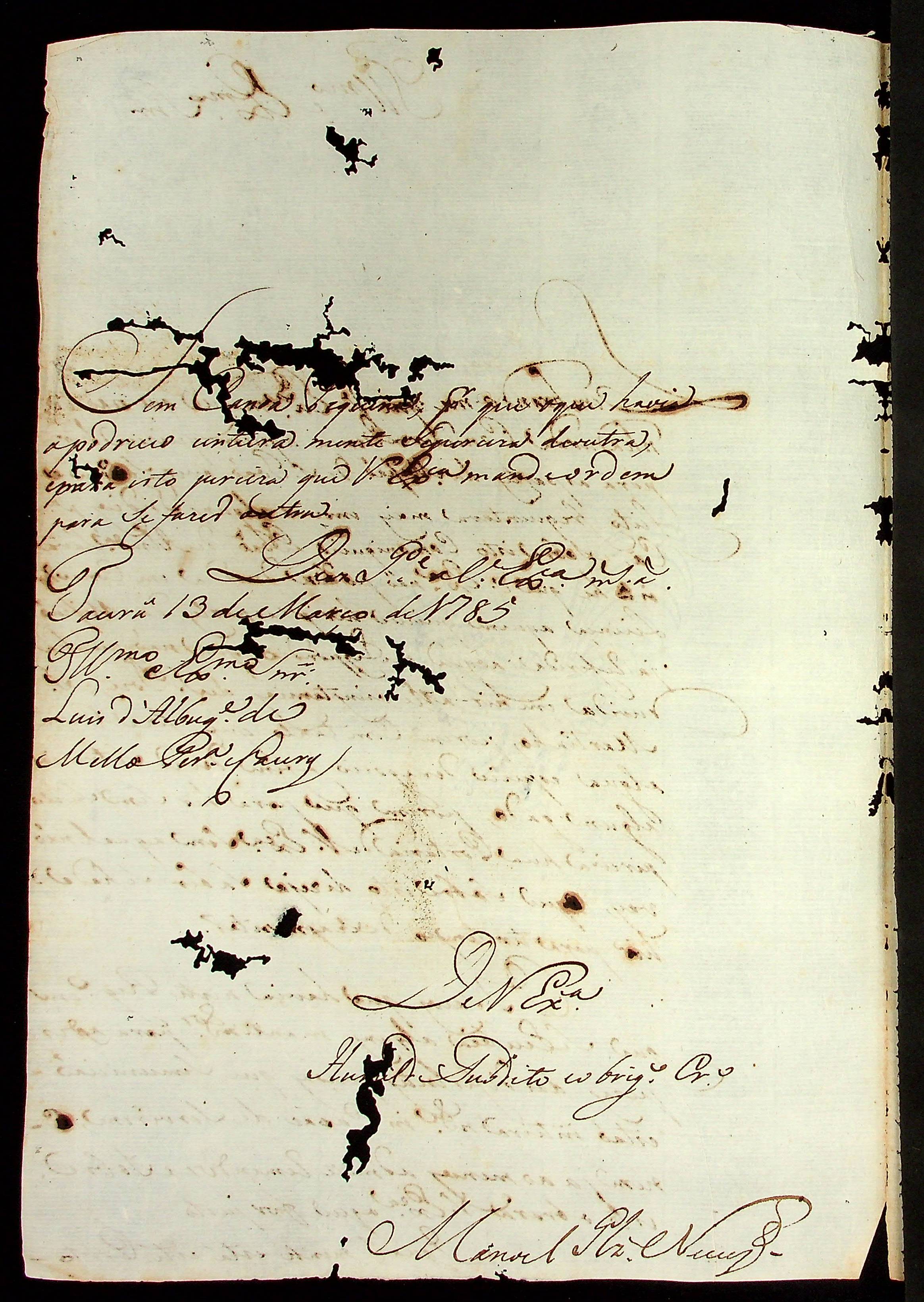 CARTA de Manoel Gonçalves Neves ao Governador e Capitão-General da Capitania de Mato Grosso Luiz de Albuquerque de Mello Pereira e Cáceres.