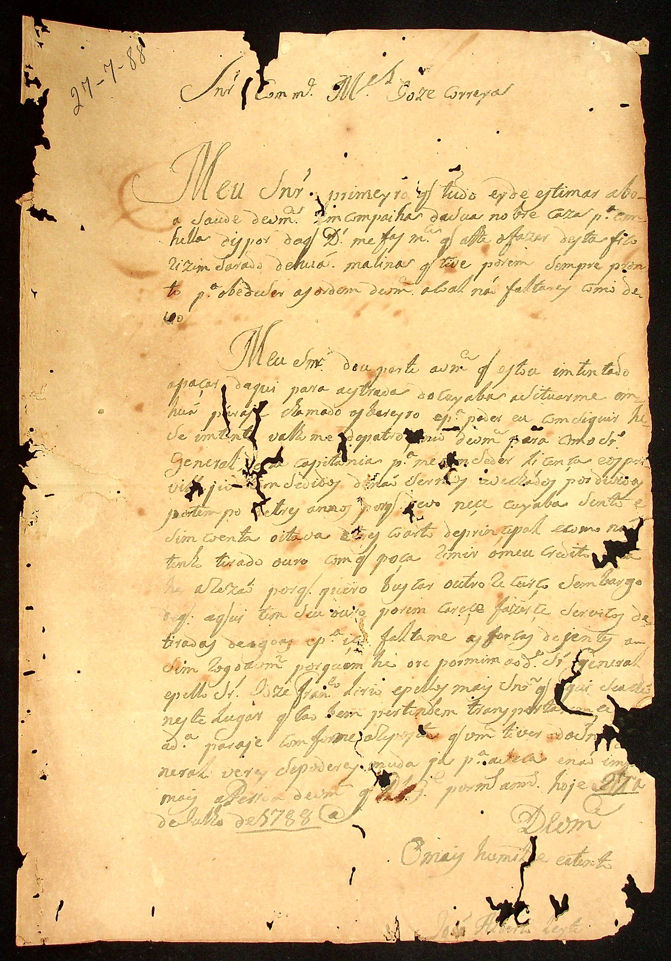 CARTA de José Alberto Leite ao Comandante do Registro da Ínsua Manoel Corrêa Leite.