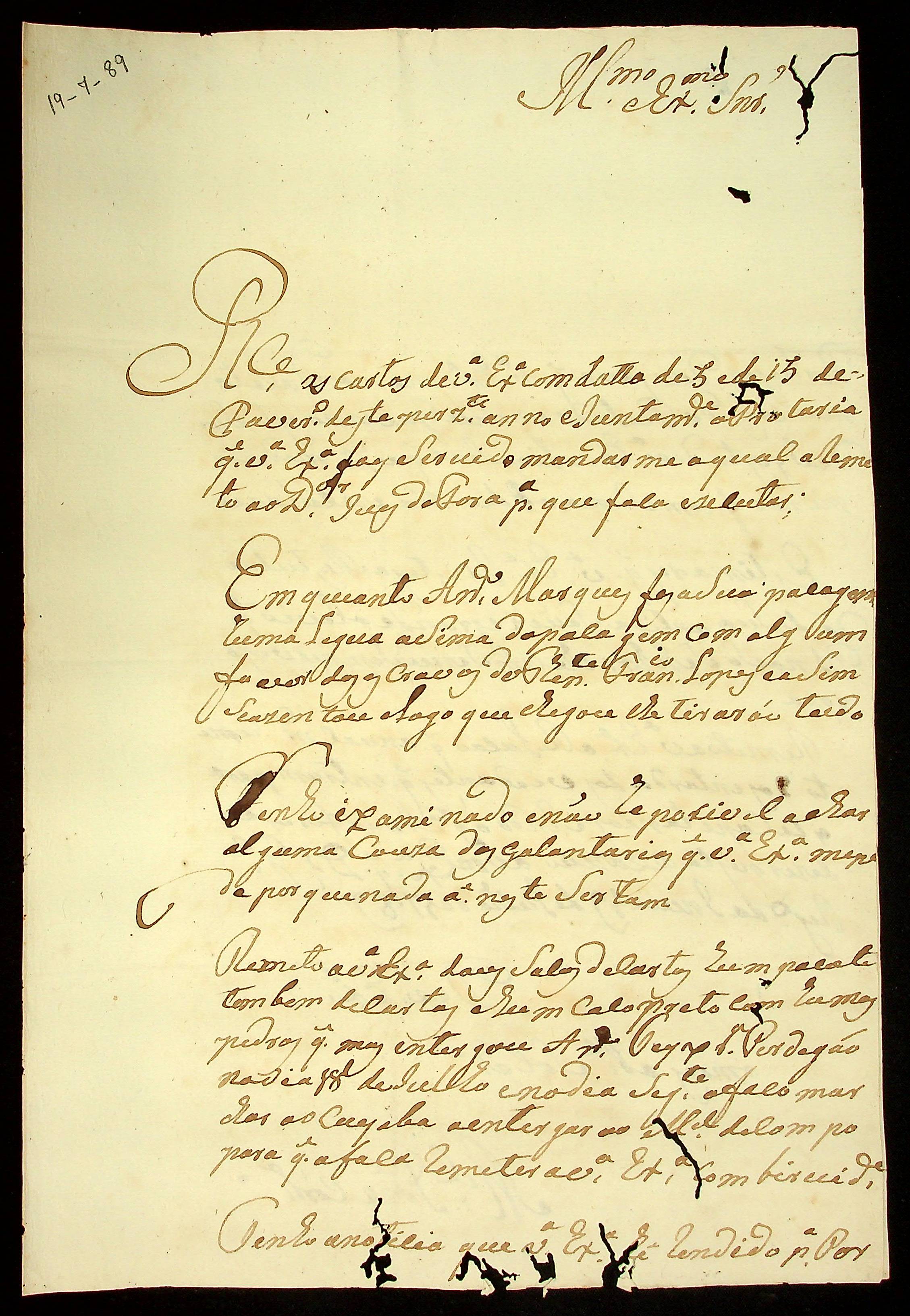 CARTA do Soldado Manoel José Corrêa ao [Governador e Capitão-General da Capitania de Mato Grosso Luiz de Albuquerque de Mello Pereira e Cáceres].