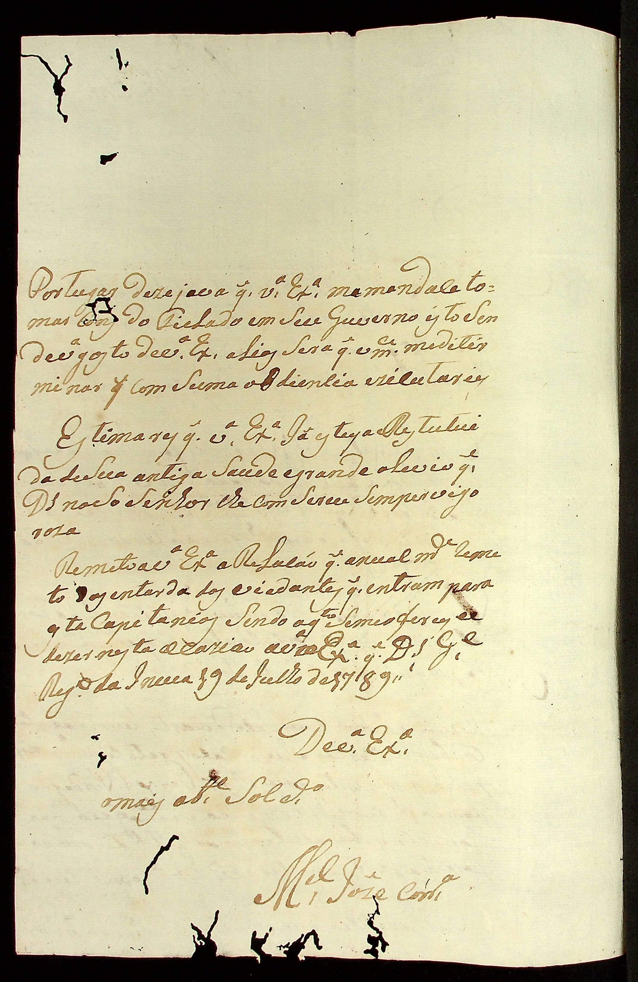 CARTA do Soldado Manoel José Corrêa ao [Governador e Capitão-General da Capitania de Mato Grosso Luiz de Albuquerque de Mello Pereira e Cáceres].
