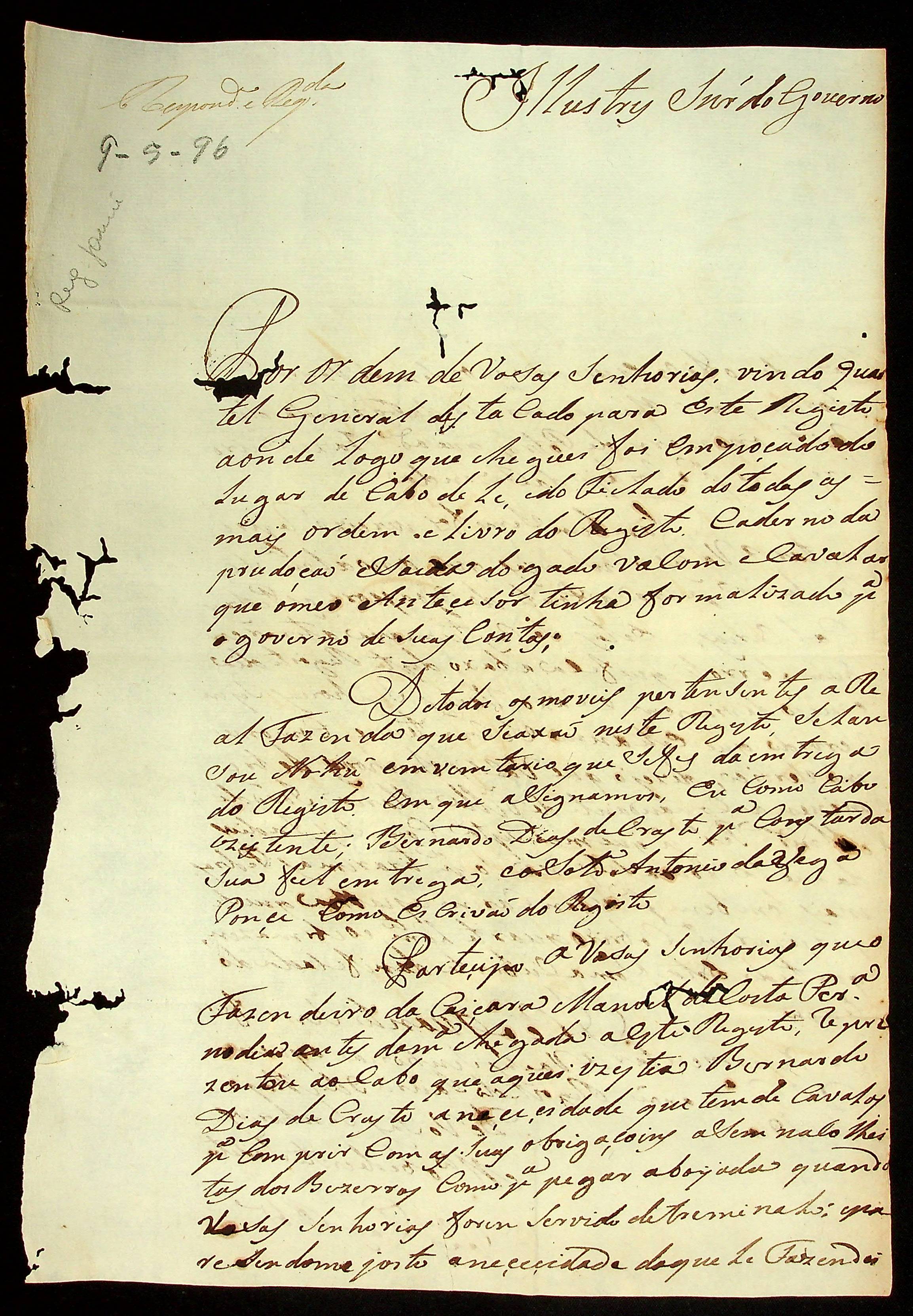 CARTA do [Cabo] Joaquim Paes Ribeiro à Primeira Junta Governativa de Mato Grosso.