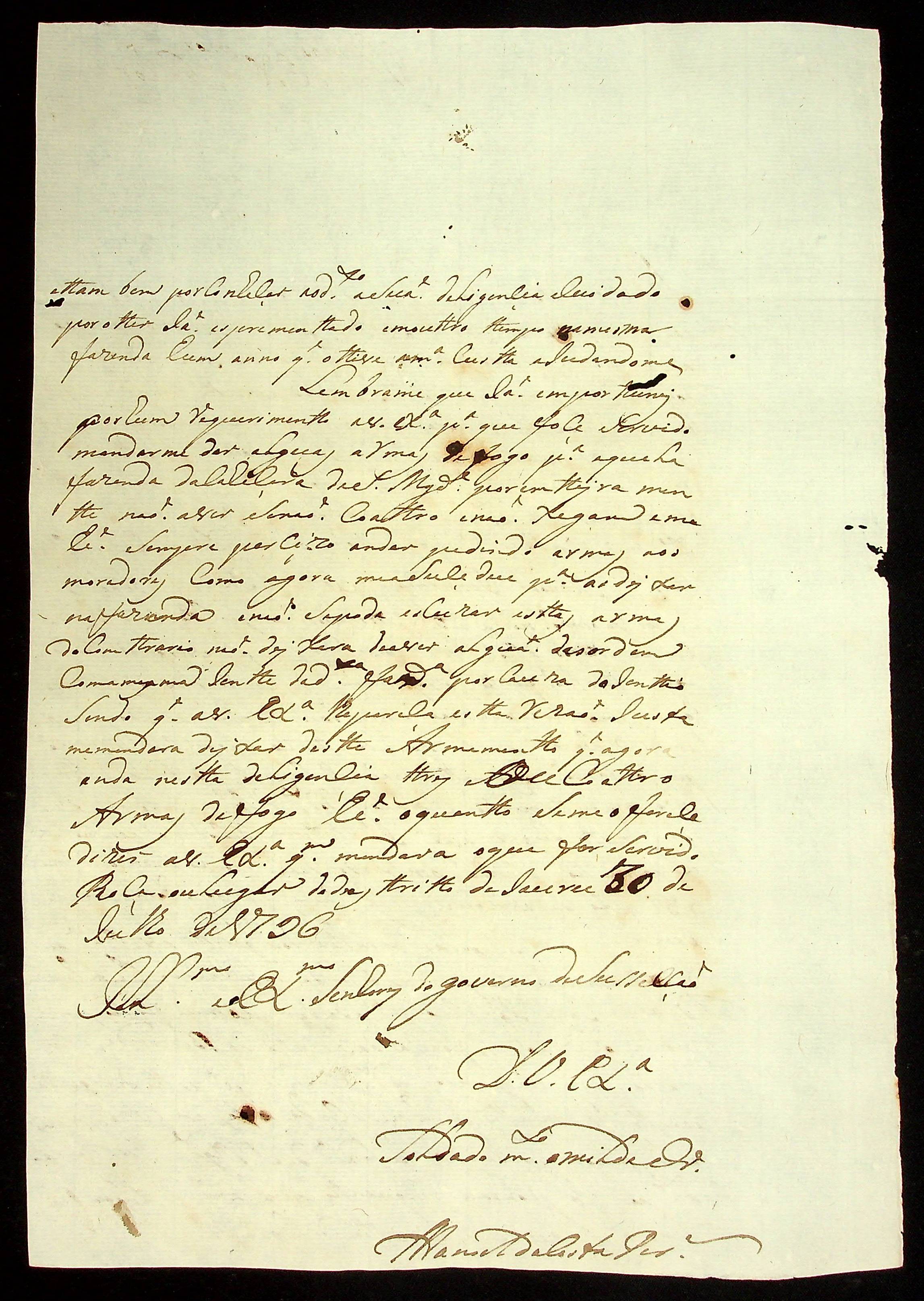 CARTA de Manoel da Costa Pereira à Primeira Junta Governativa da Capitania de Mato Grosso.