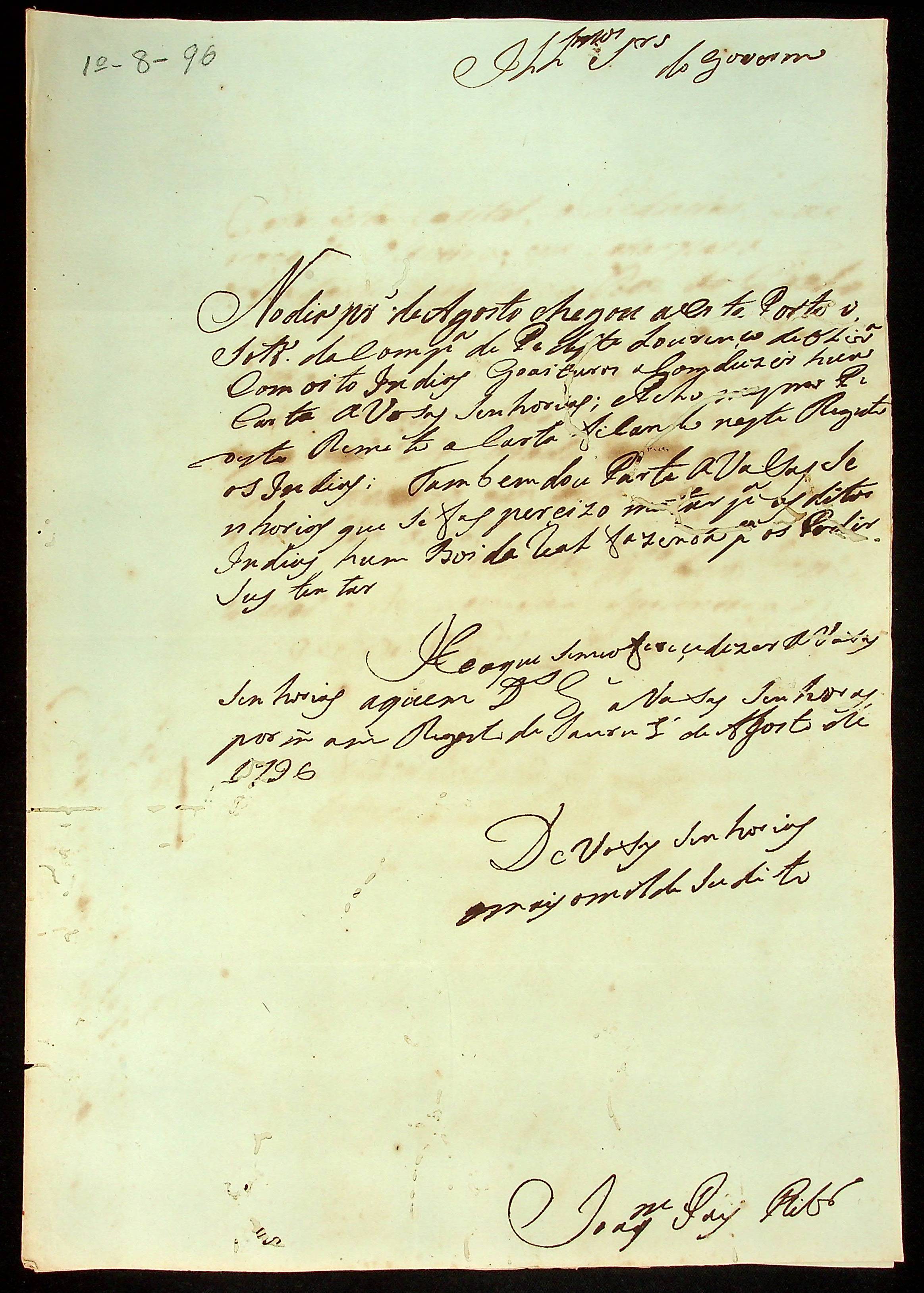 CARTA do [Cabo] Joaquim Paes Ribeiro à Primeira Junta Governativa da Capitania de Mato Grosso.