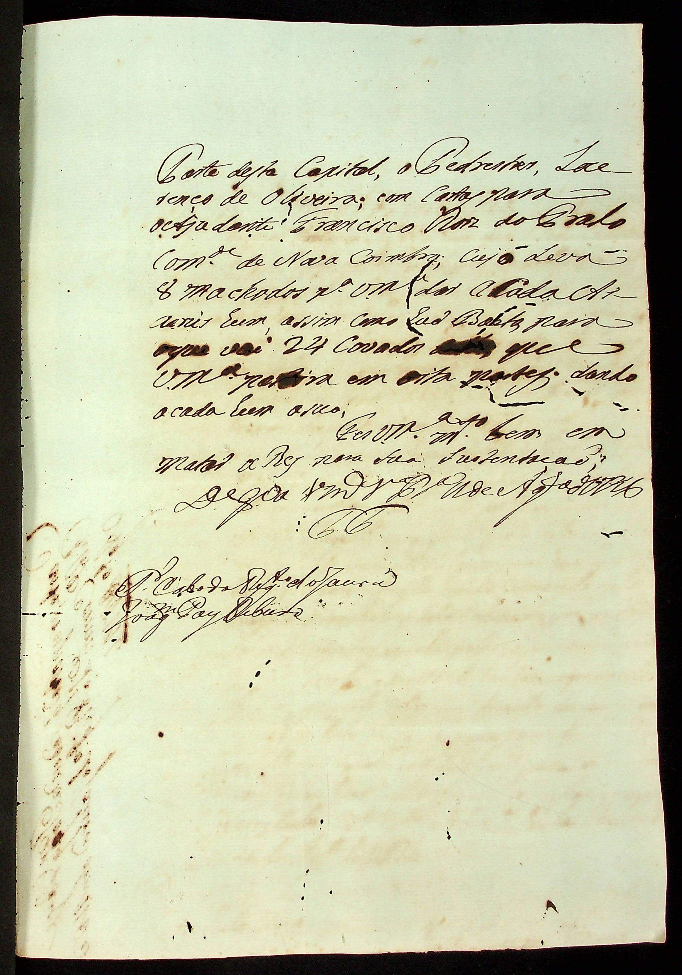 CARTA do [Cabo] Joaquim Paes Ribeiro à Primeira Junta Governativa da Capitania de Mato Grosso.