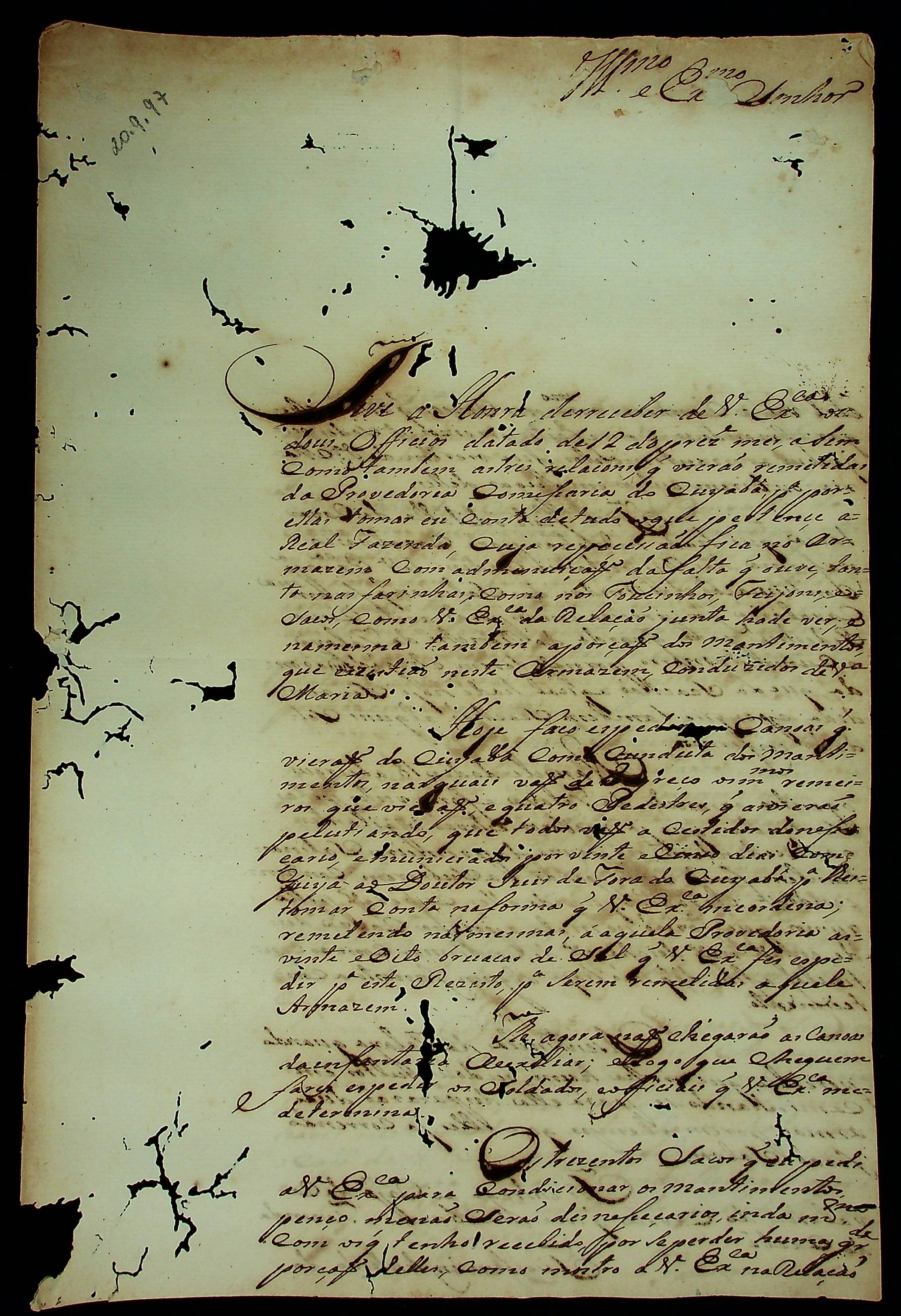 CARTA de Marcelino Ribeiro ao Governador e Capitão-General da Capitania de Mato Grosso Caetano Pinto de Miranda e Montenegro.