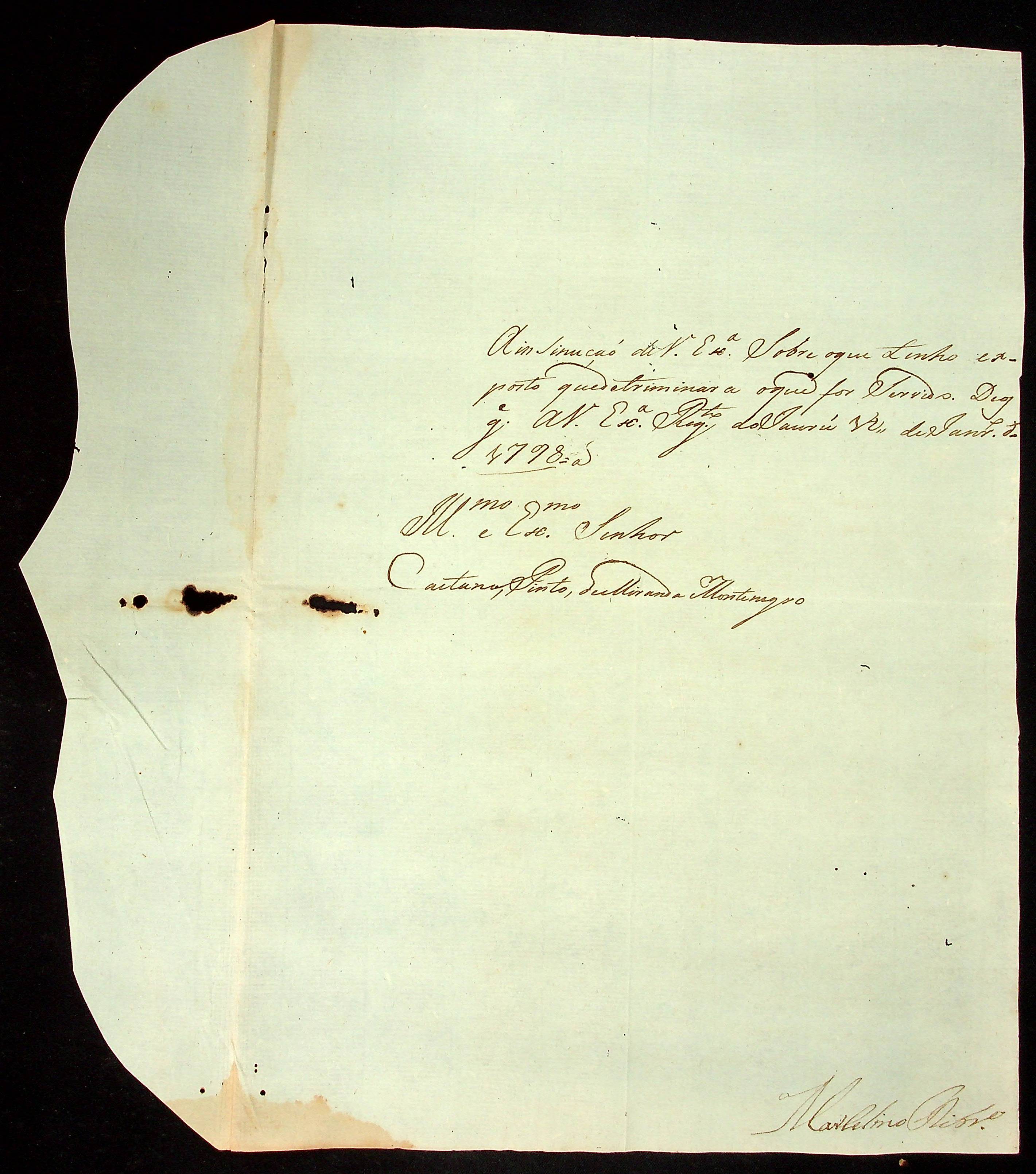 CARTA do [Tenente Comandante] Marcelino Ribeiro ao Governador e Capitão-General da Capitania de Mato Grosso Caetano Pinto de Miranda e Montenegro.