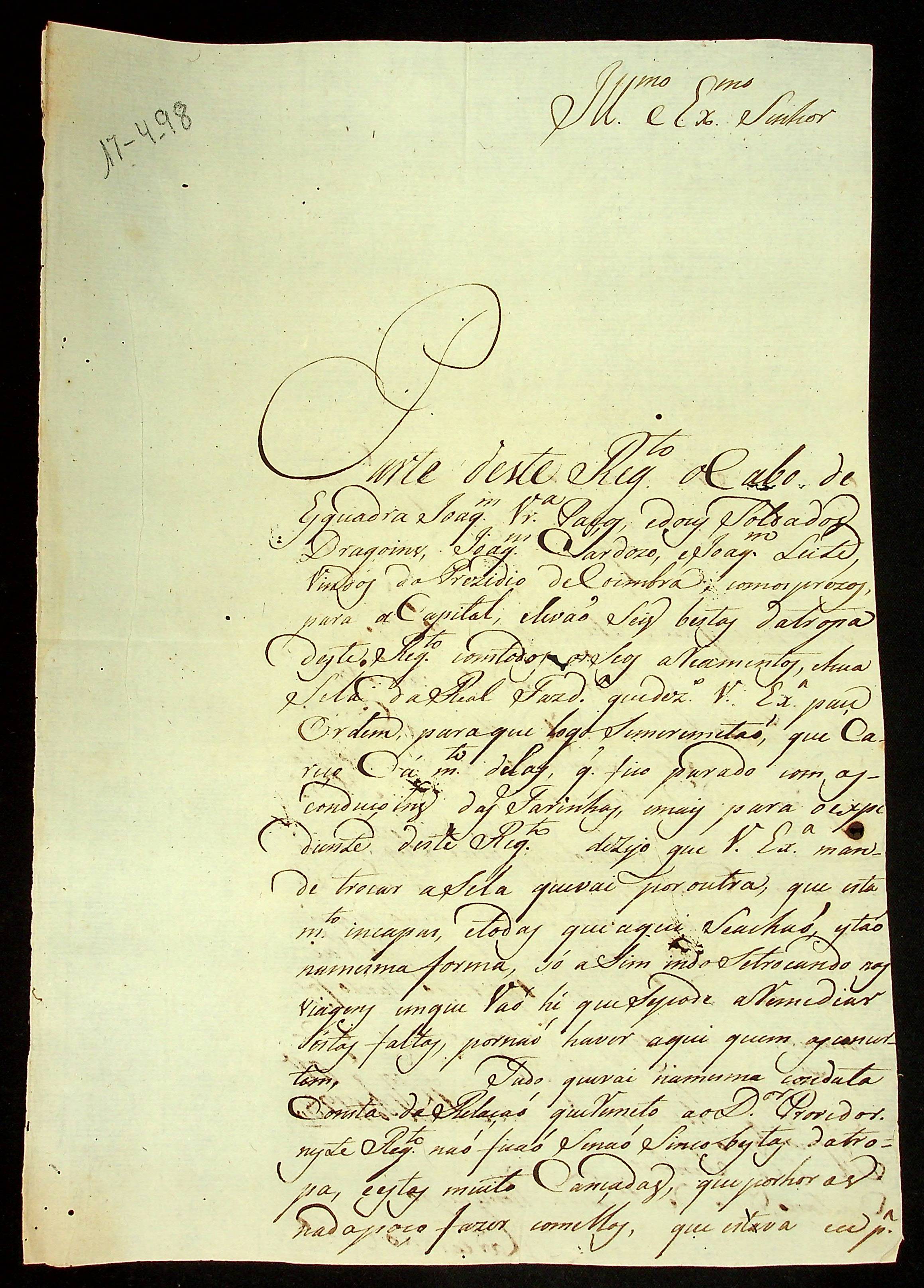 CARTA do [Tenente e Comandante] Marcelino Ribeiro ao Governador e Capitão-General da Capitania de Mato Grosso Caetano Pinto de Miranda e Montenegro.