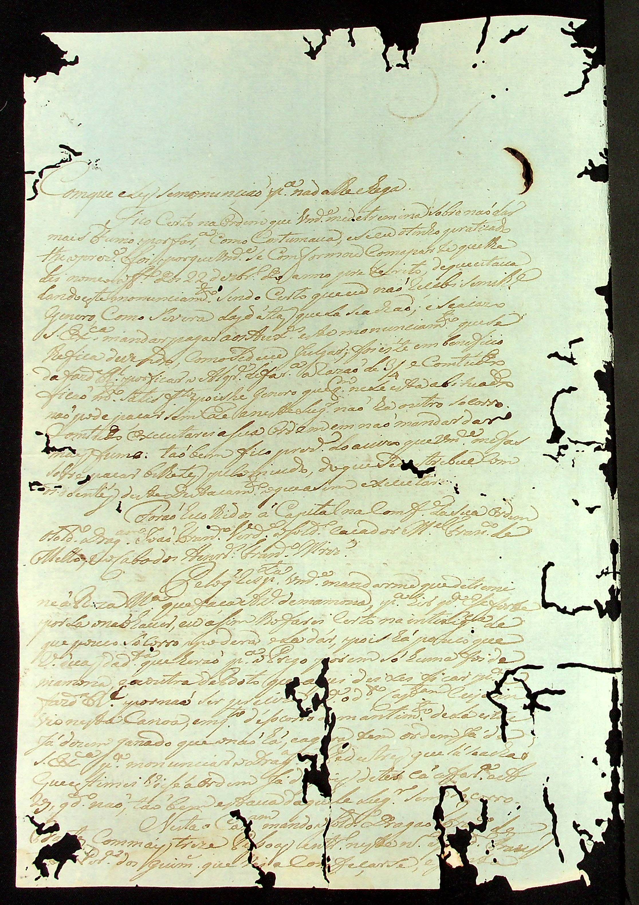 CARTA de José de Brito […] ao Comandante do Forte Príncipe da Beira José Manoel Cardoso da Cunha.