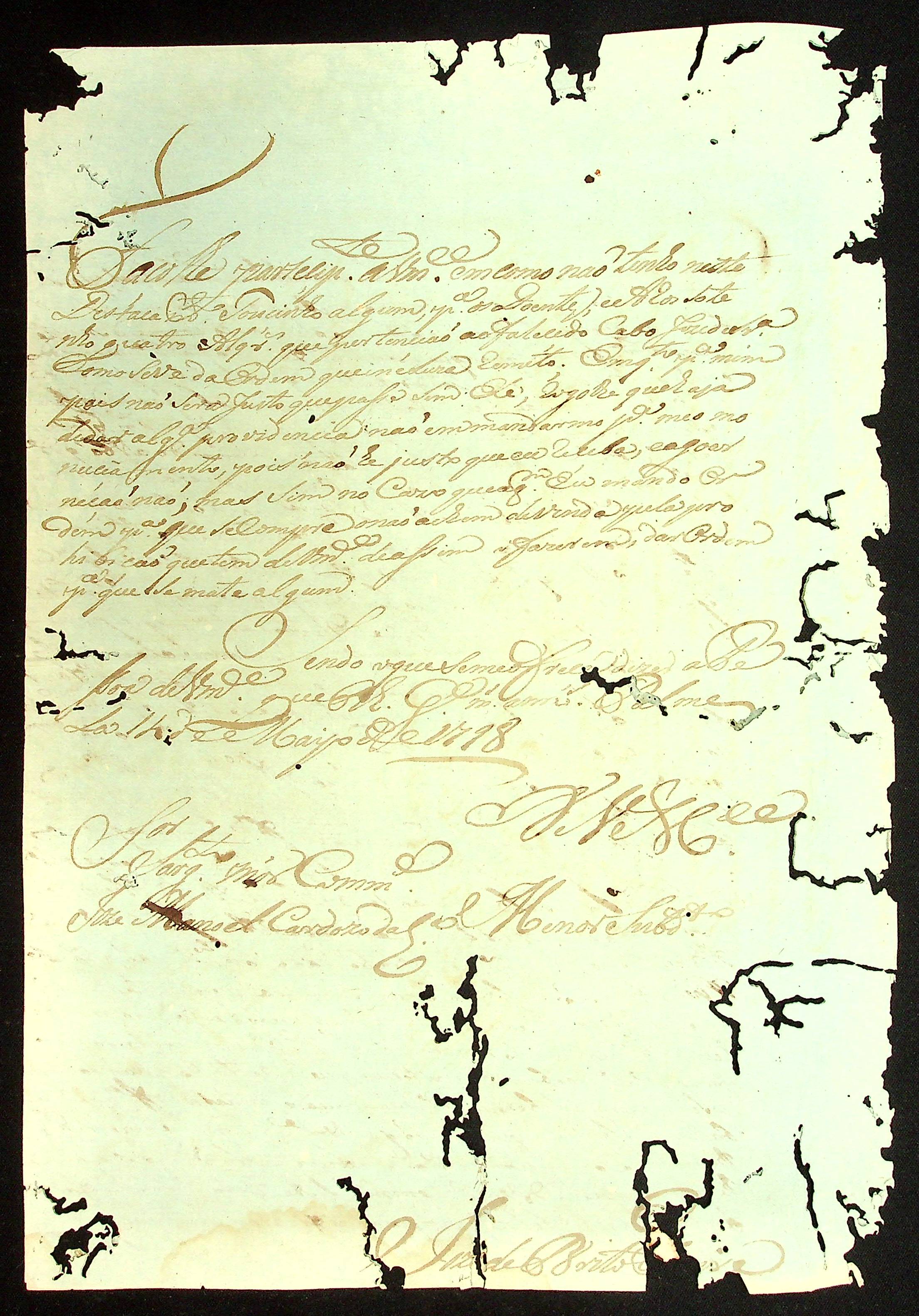 CARTA de José de Brito […] ao Comandante do Forte Príncipe da Beira José Manoel Cardoso da Cunha.