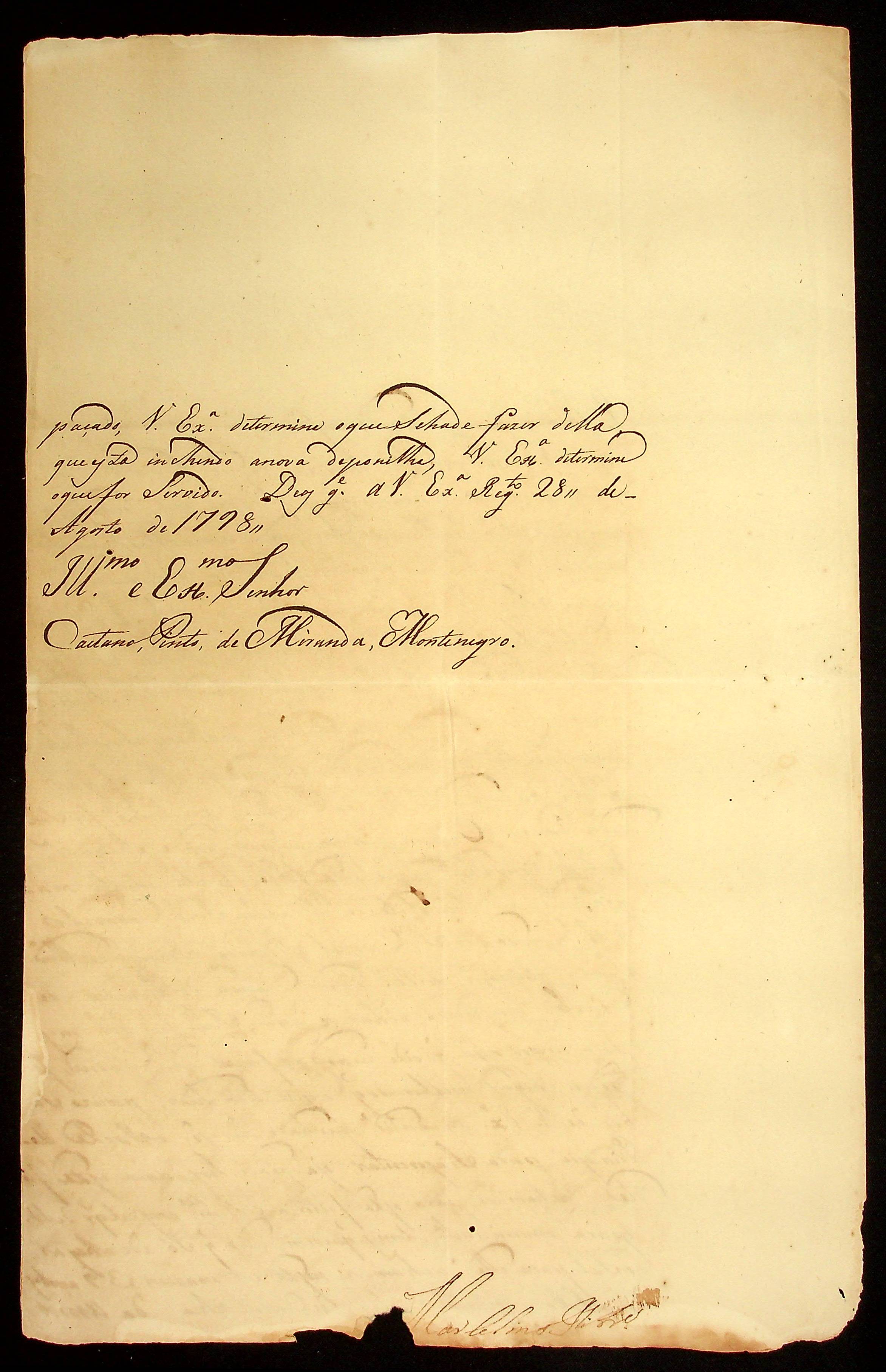 CARTA do [Tenente e Comandante] Marcelino Ribeiro ao Governador e Capitão-General da Capitania de Mato Grosso Caetano Pinto de Miranda e Montenegro.