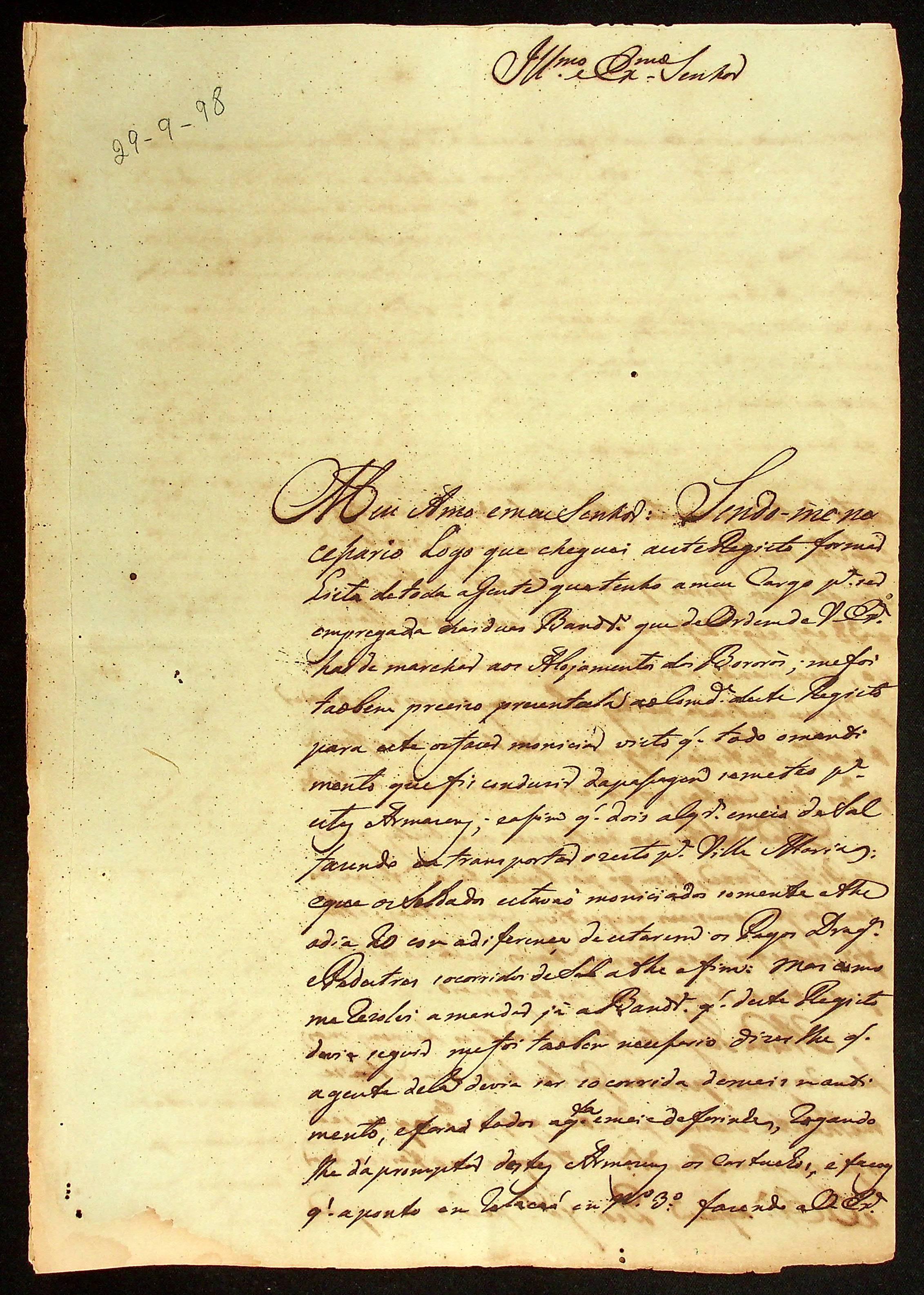 CARTA do [Ajudante e Comandante] Manoel [Rabelo] Leite ao Governador e Capitão-General da Capitania de Mato Grosso Caetano Pinto de Miranda e Montenegro.