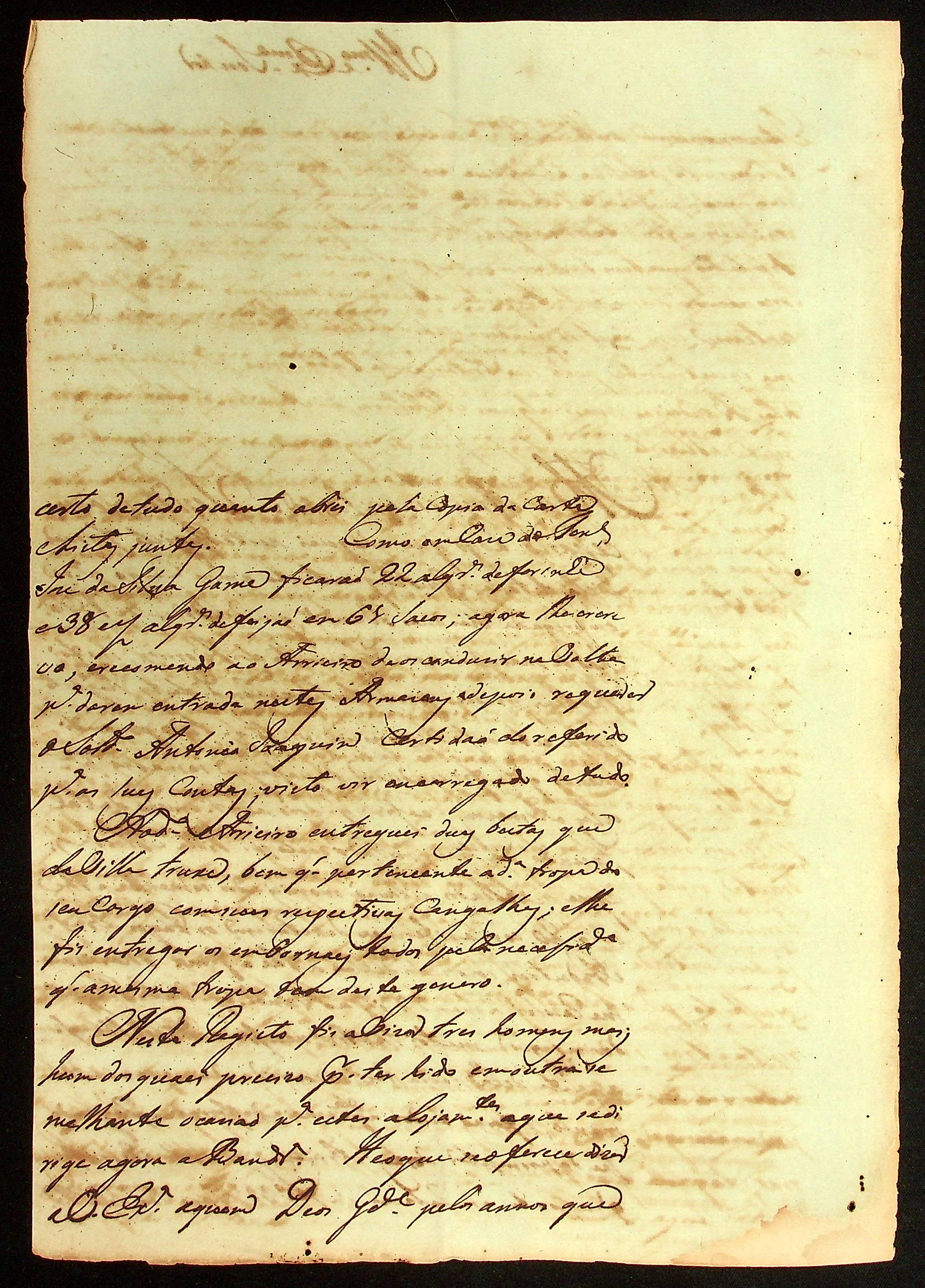 CARTA do [Ajudante e Comandante] Manoel [Rabelo] Leite ao Governador e Capitão-General da Capitania de Mato Grosso Caetano Pinto de Miranda e Montenegro.