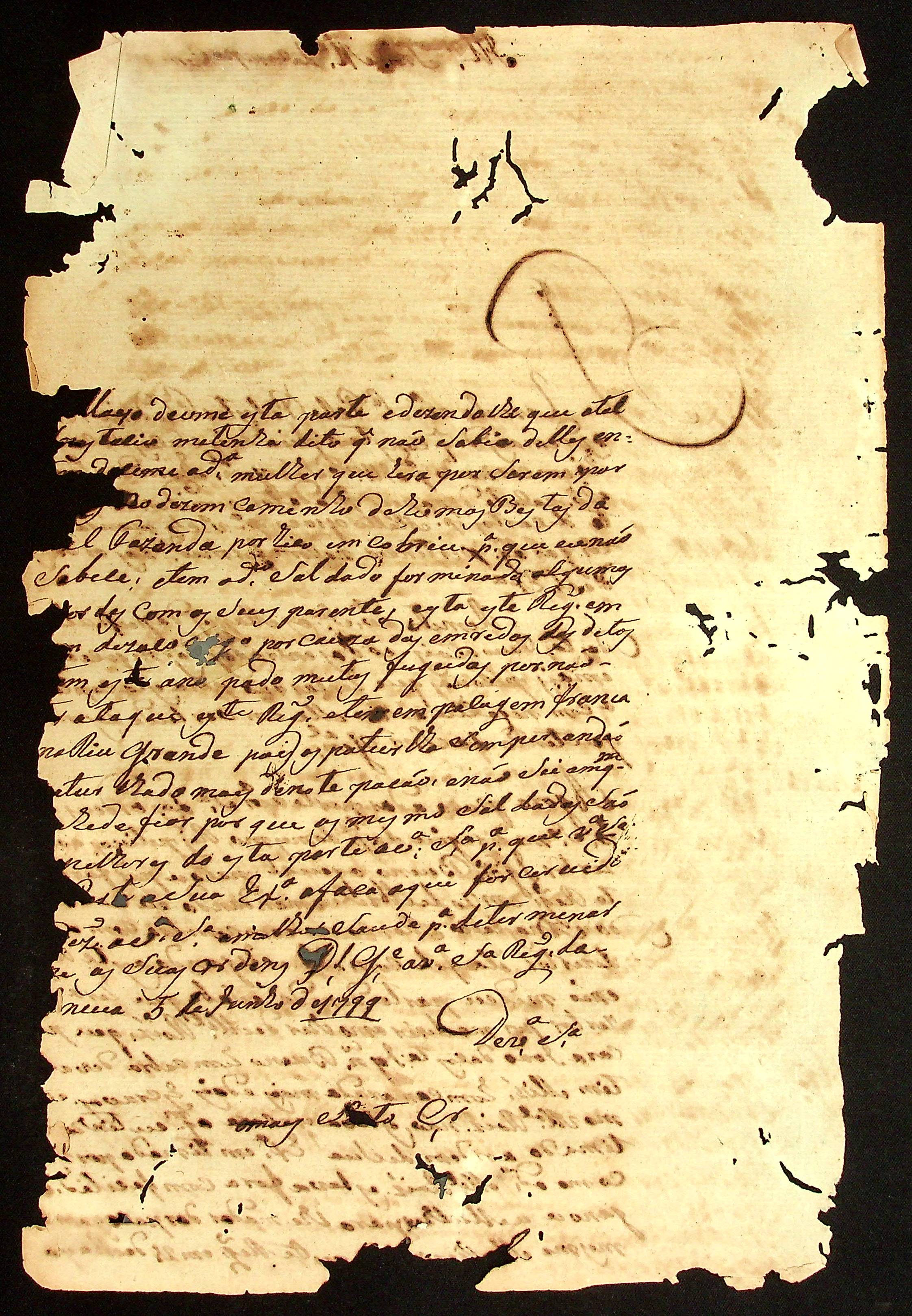 CARTA enviada ao Mestre de Campo e Comandante [da Vila Real do Senhor Bom Jesus do Cuiabá José Paes Falcão das Neves].