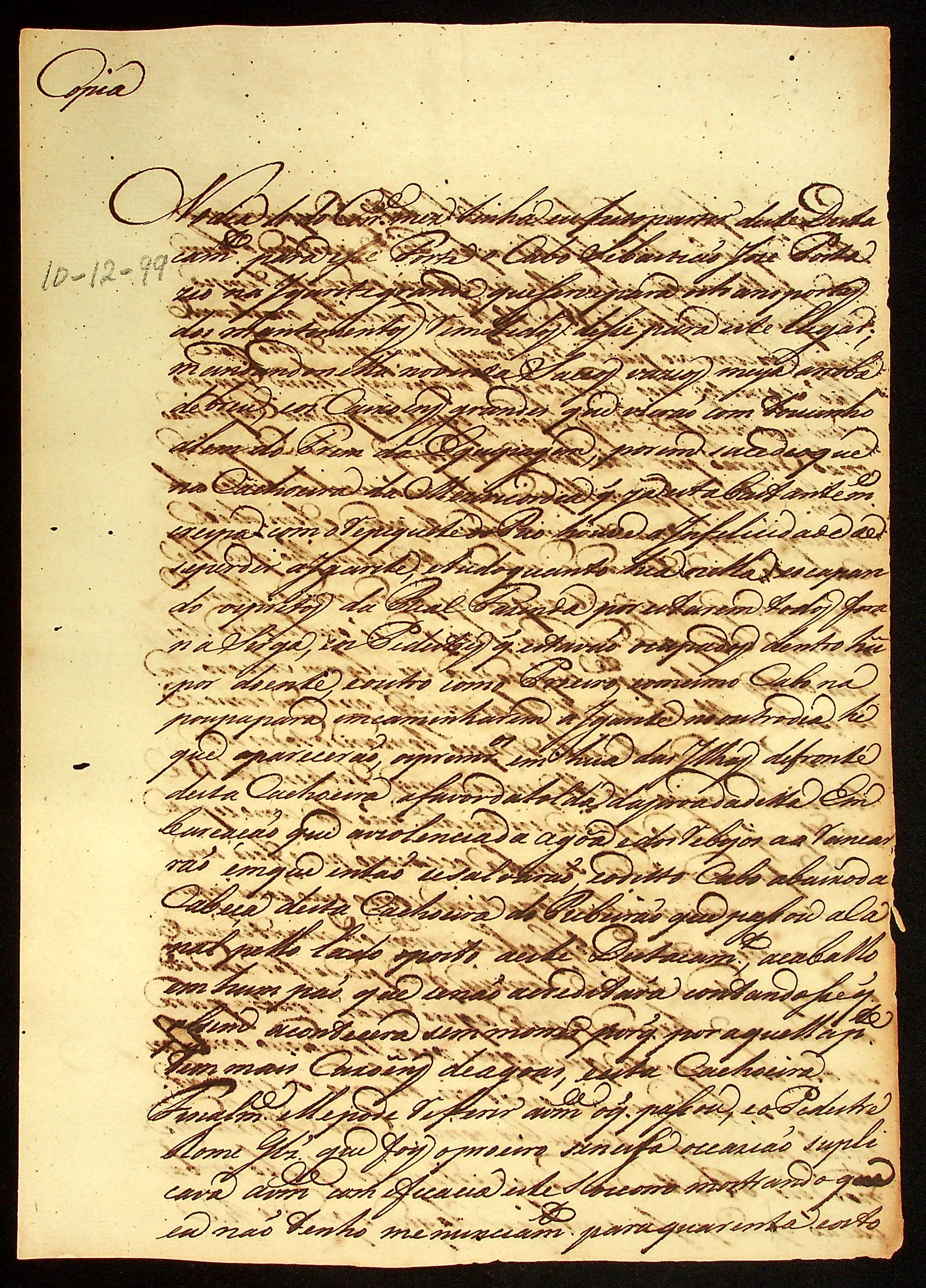 CARTA (cópia) do [Ajudante e Comandante] Manoel [Rabelo] Leite ao Sargento-mor Comandante José Manoel Cardozo da Cunha.