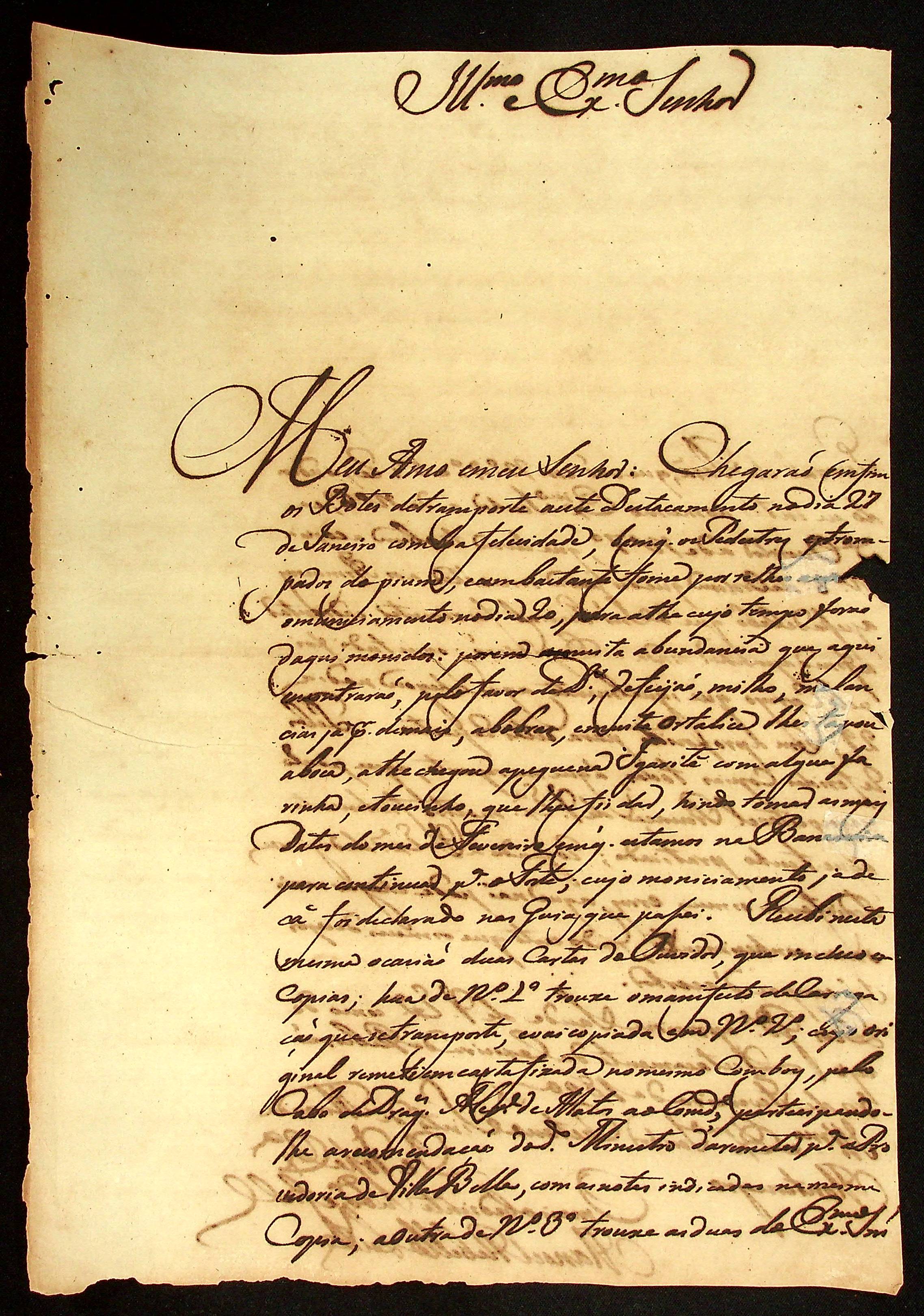 CARTA do [Ajudante e Comandante] Manoel [Rabelo] Leite ao Governador e Capitão-General da Capitania de Mato Grosso Caetano Pinto de Miranda e Montenegro.