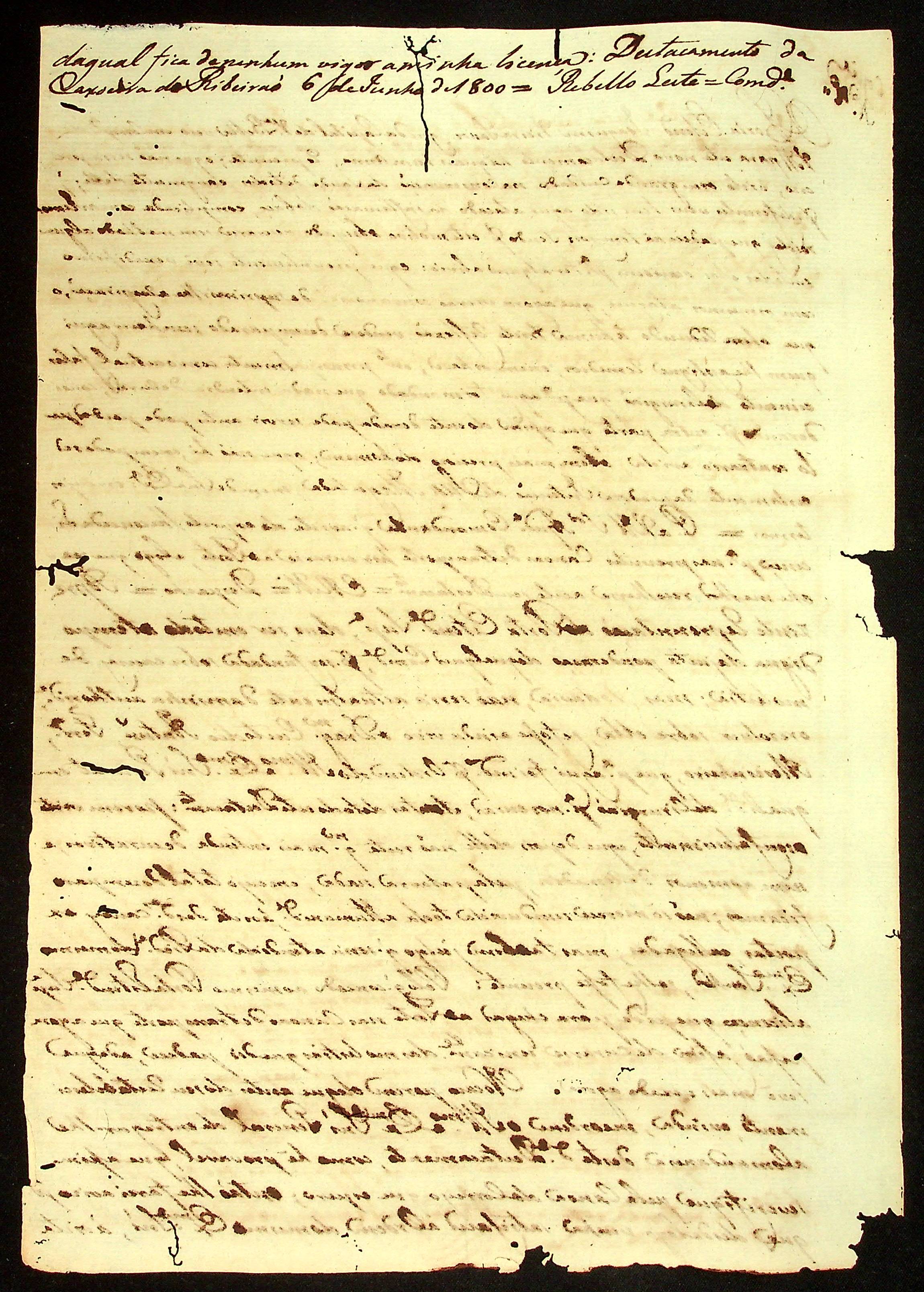 CARTA (cópia) do [Ajudante e Comandante] [Manoel] [Rabelo] Leite ao [Governador e Capitão-General Caetano Pinto de Miranda e Montenegro].