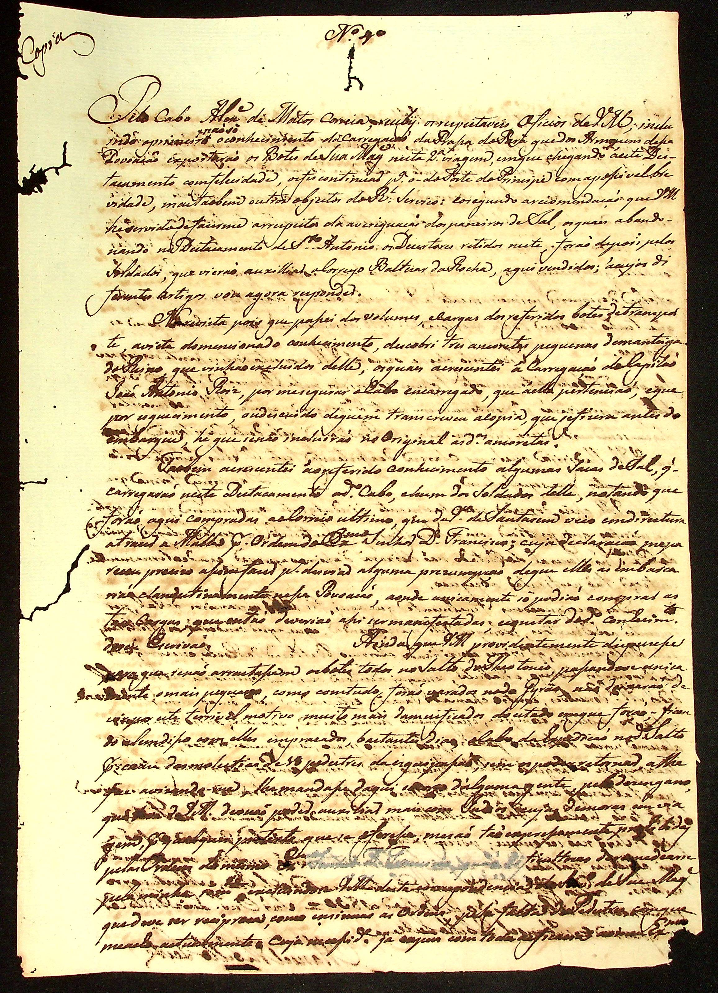 CARTA (cópia) do [Ajudante e Comandante] Manoel [Rabelo] Leite ao Ouvidor Luís Pinto Cerqueira.