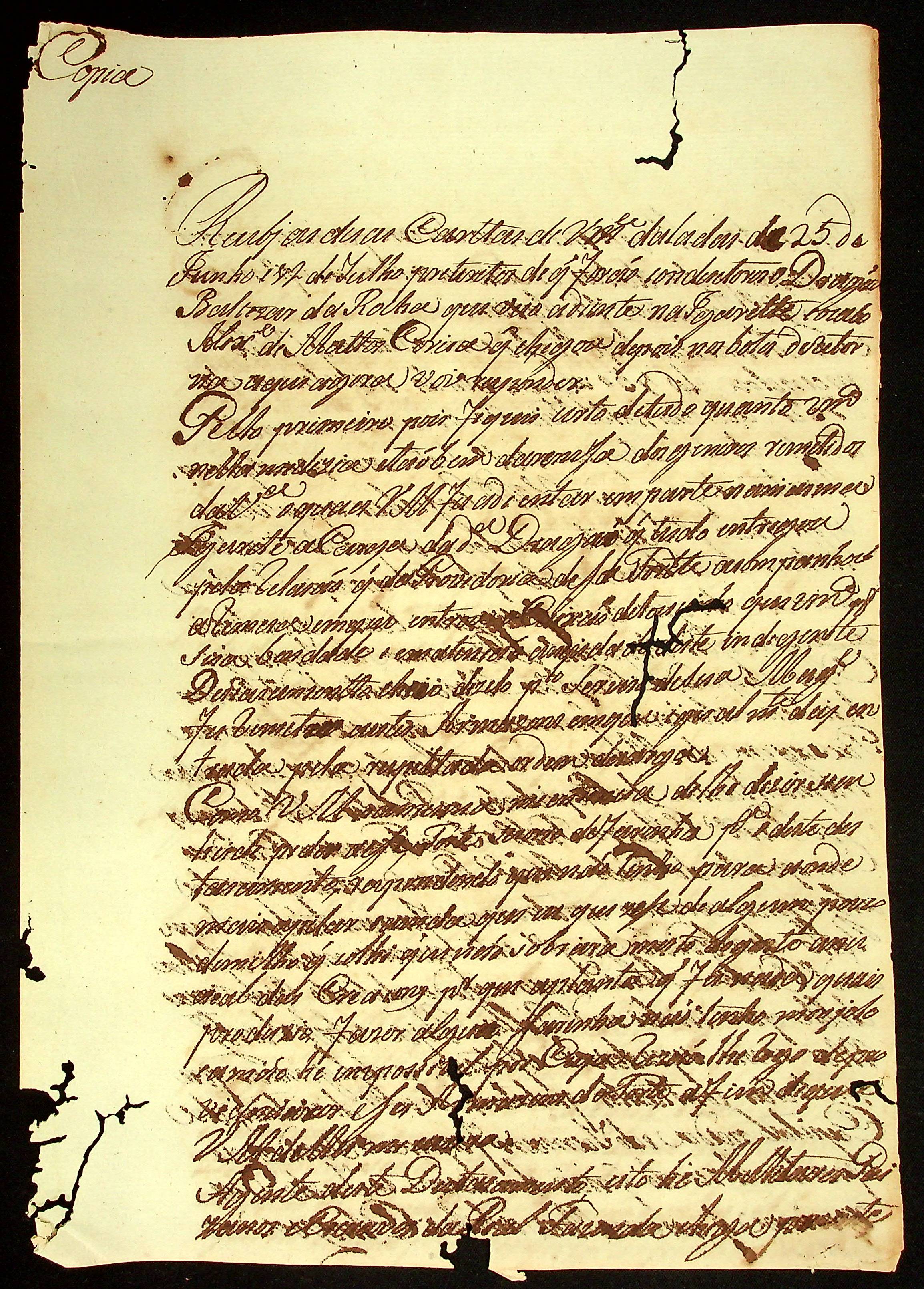 CARTA (cópia) do [Ajudante e Comandante] Manoel [Rabelo] Leite ao Sargento-mor e [Comandante do FortePríncipe da Beira José Manoel Cardozo da Cunha].