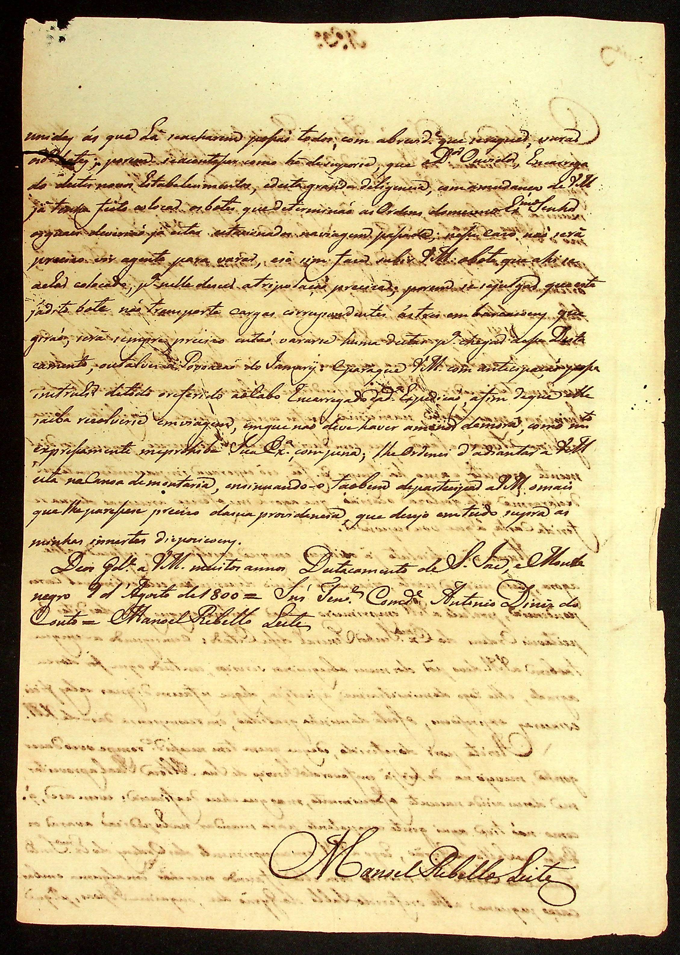 CARTA (cópia) do [Ajudante e Comandante] Manoel [Rabelo] Leite ao Comandante Antônio Diníz de Couto.