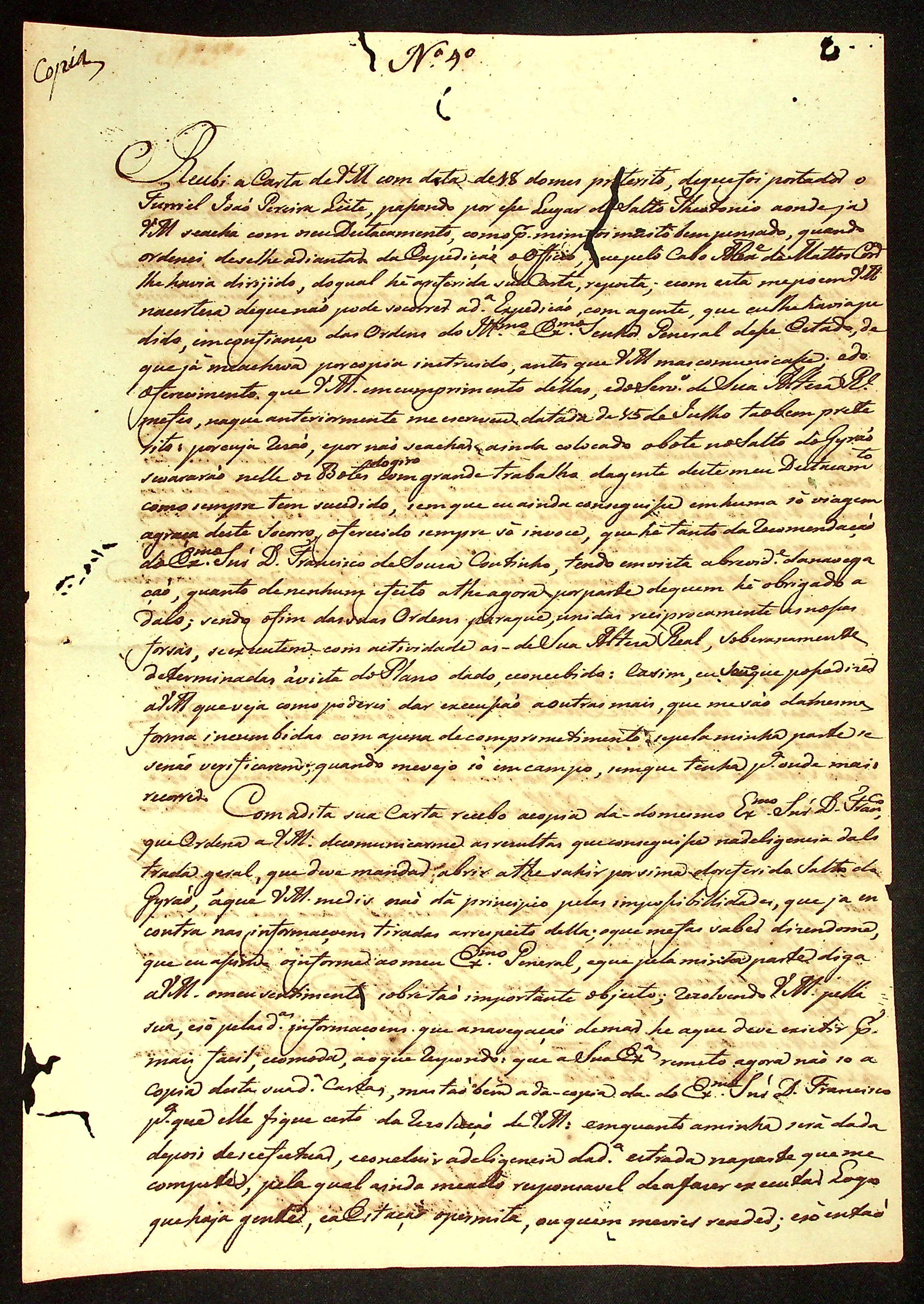 CARTA (cópia) do [Ajudante e Comandante] Manoel [Rabelo] Leite ao Comandante Antônio Diniz do Couto.