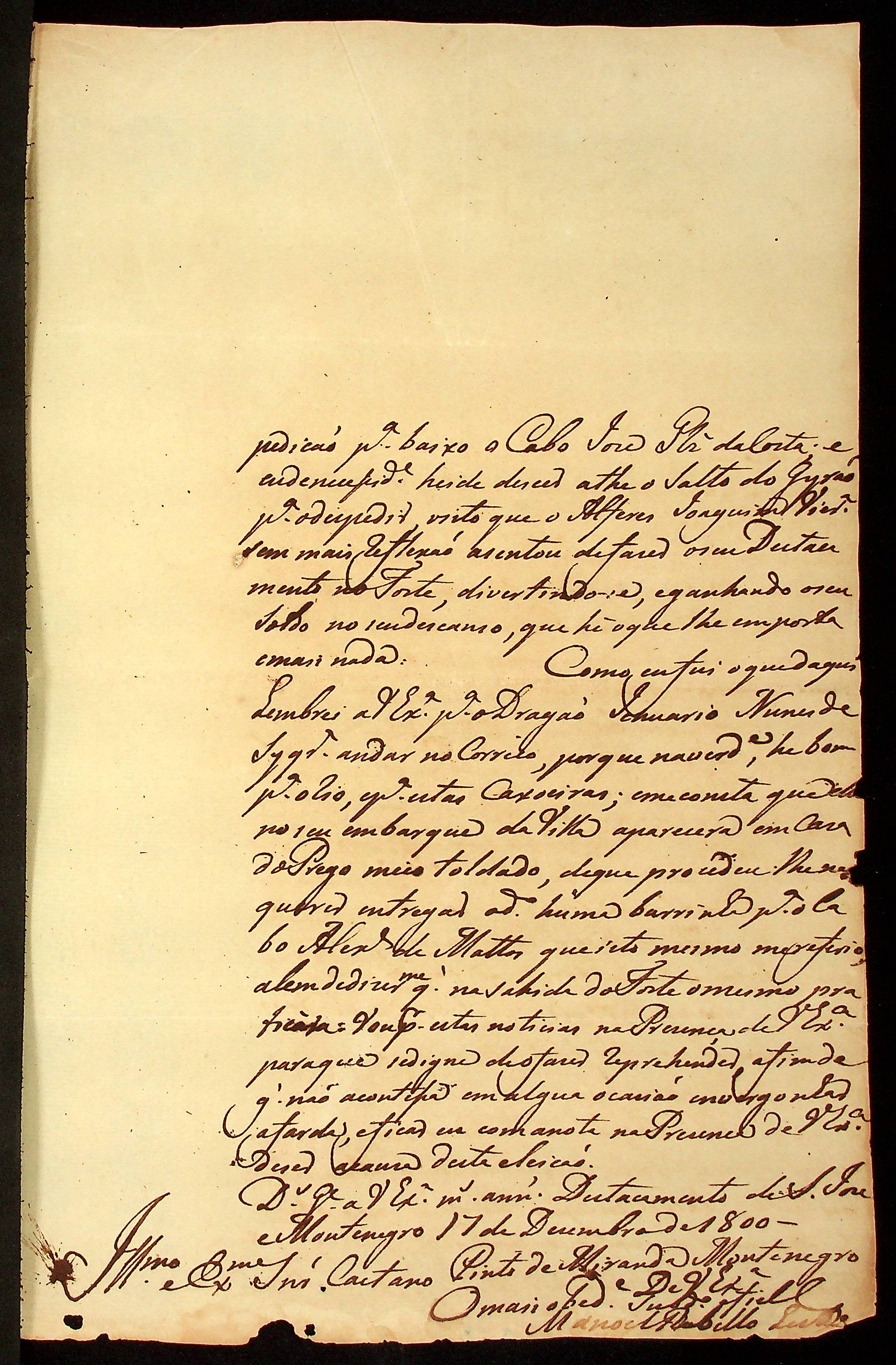CARTA do [Ajudante e Comandante] Manoel [Rabelo] Leite ao Governador e Capitão-General da Capitania de Mato Grosso Caetano Pinto de Miranda e Montenegro.