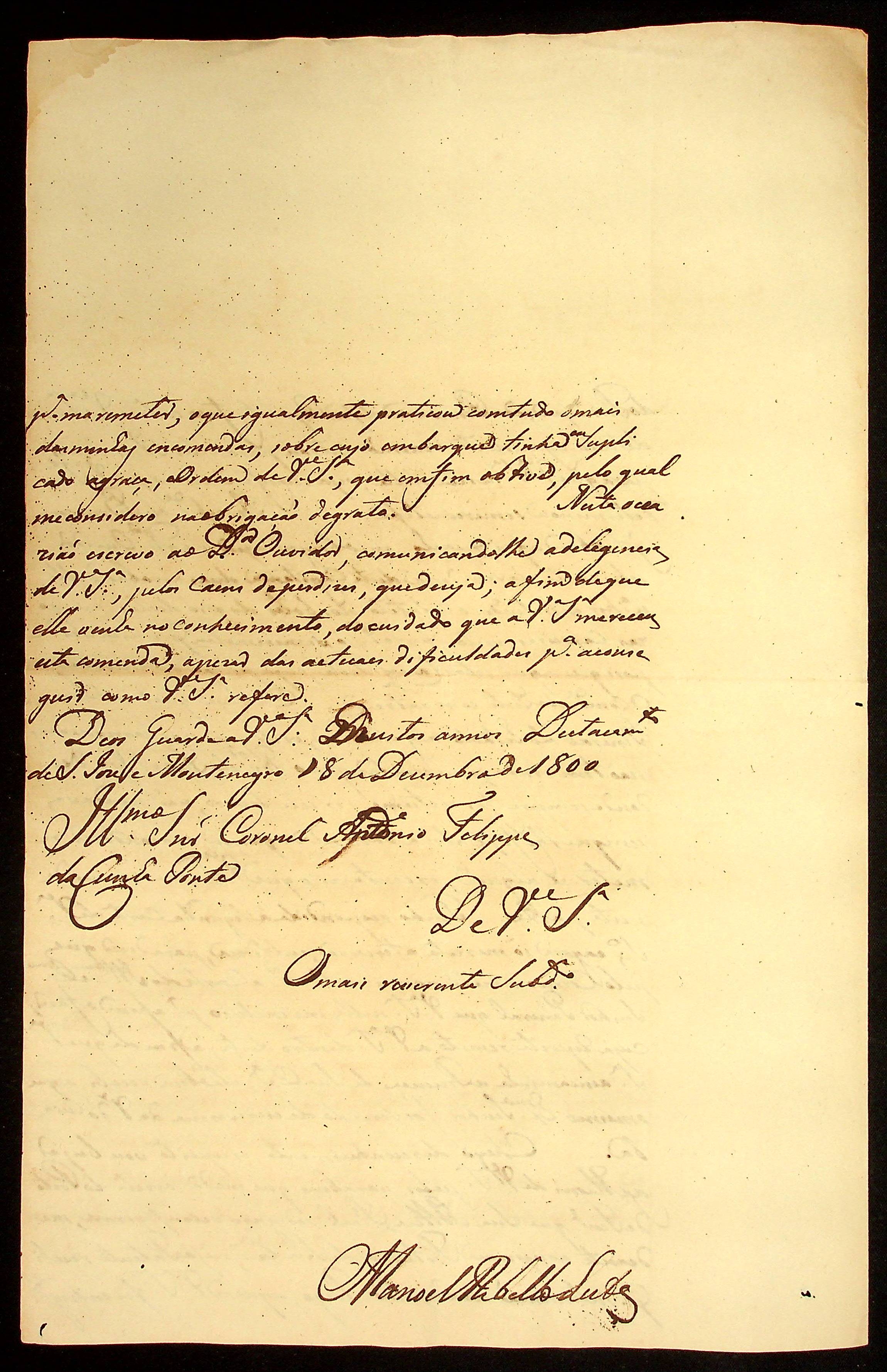 CARTA do [Ajudante e Comandante] Manoel [Rabelo] Leite ao Coronel Antônio Felipe da Cunha Ponte.