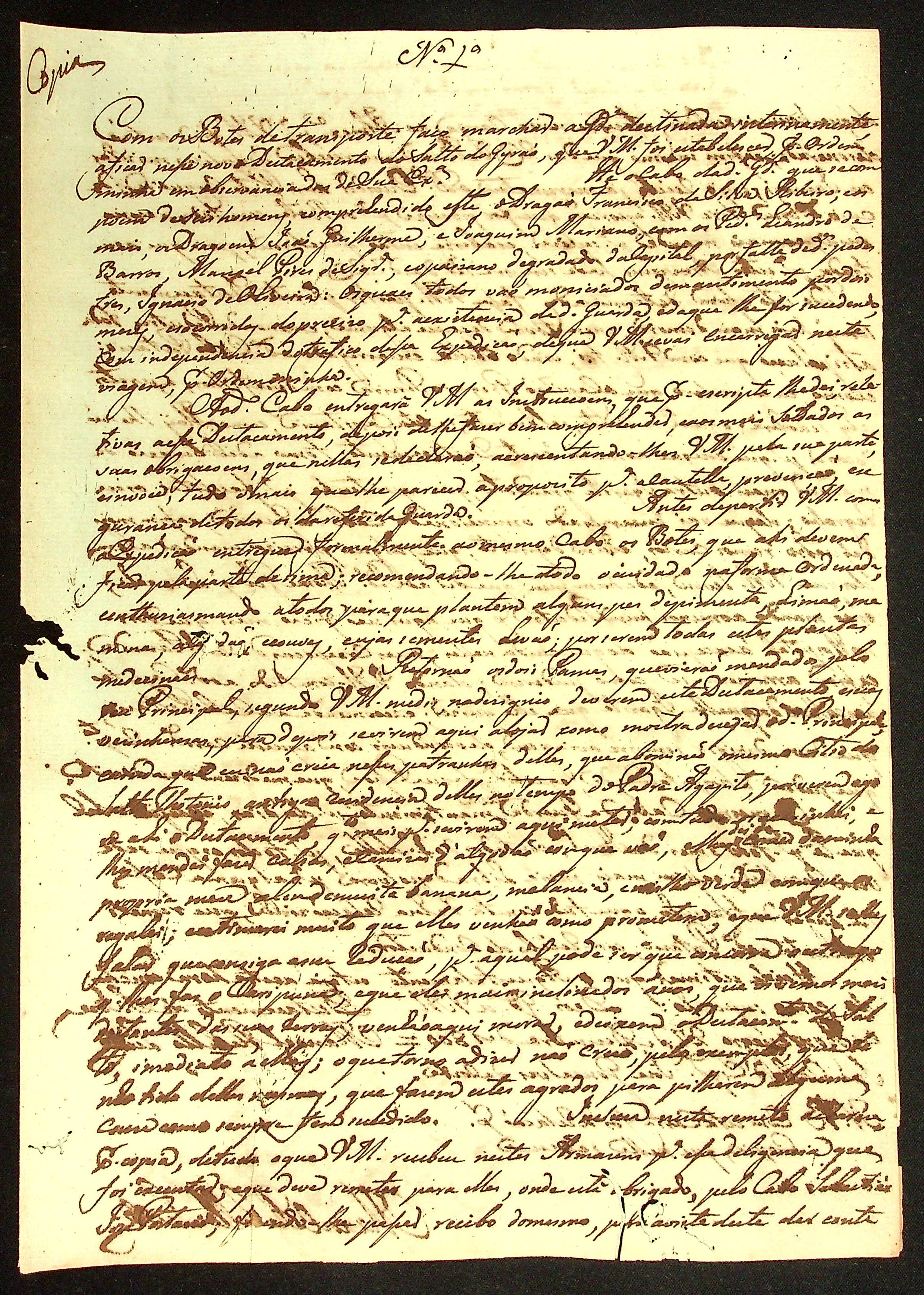 CARTA (cópia) do [Ajudante e Comandante] Manoel [Rabelo] Leite ao Cabo de Esquadra José Gonçalves da Costa.