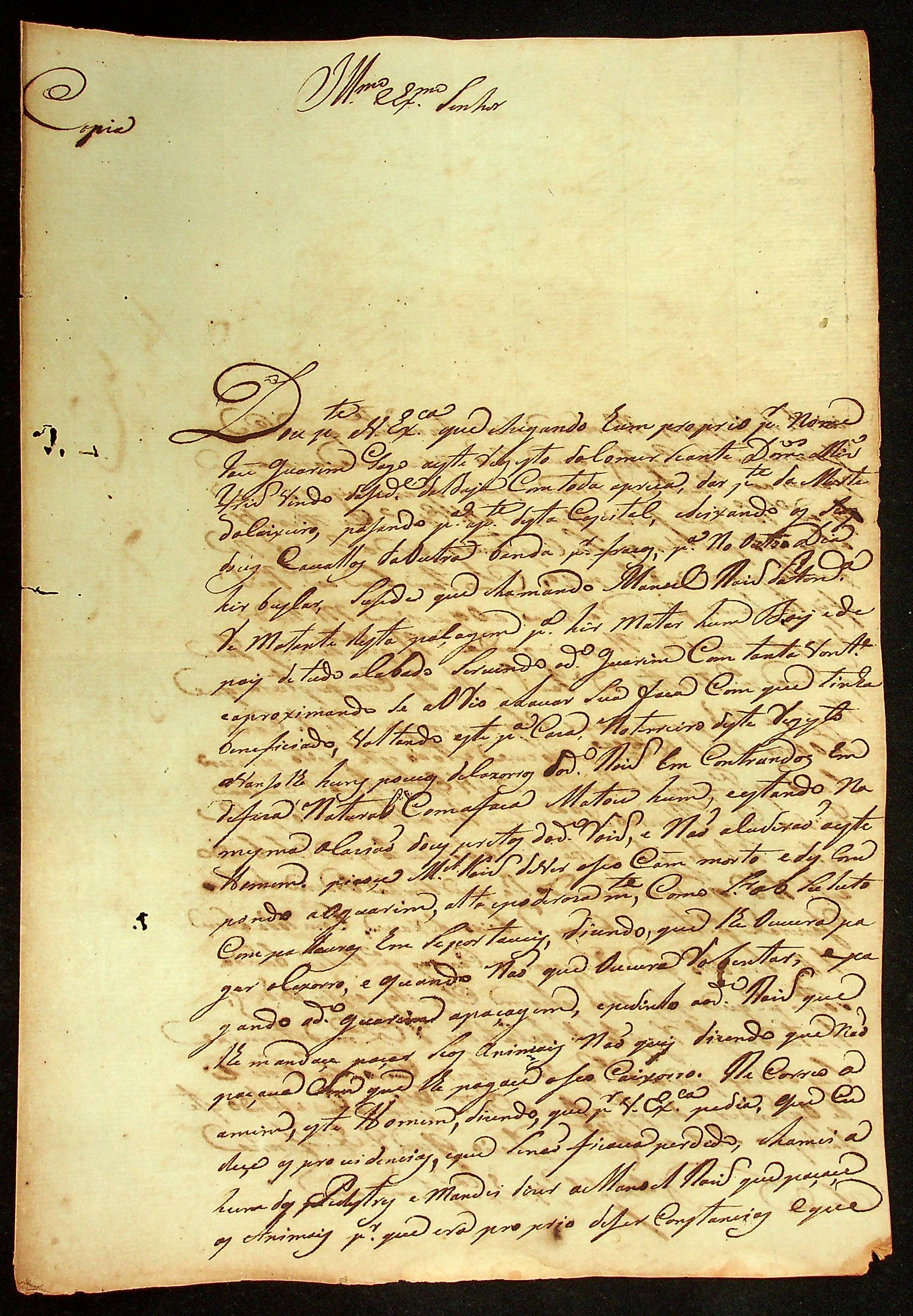 CARTA (cópia) de Manoel dos Santos Ferreira a João Manoel Menezes.