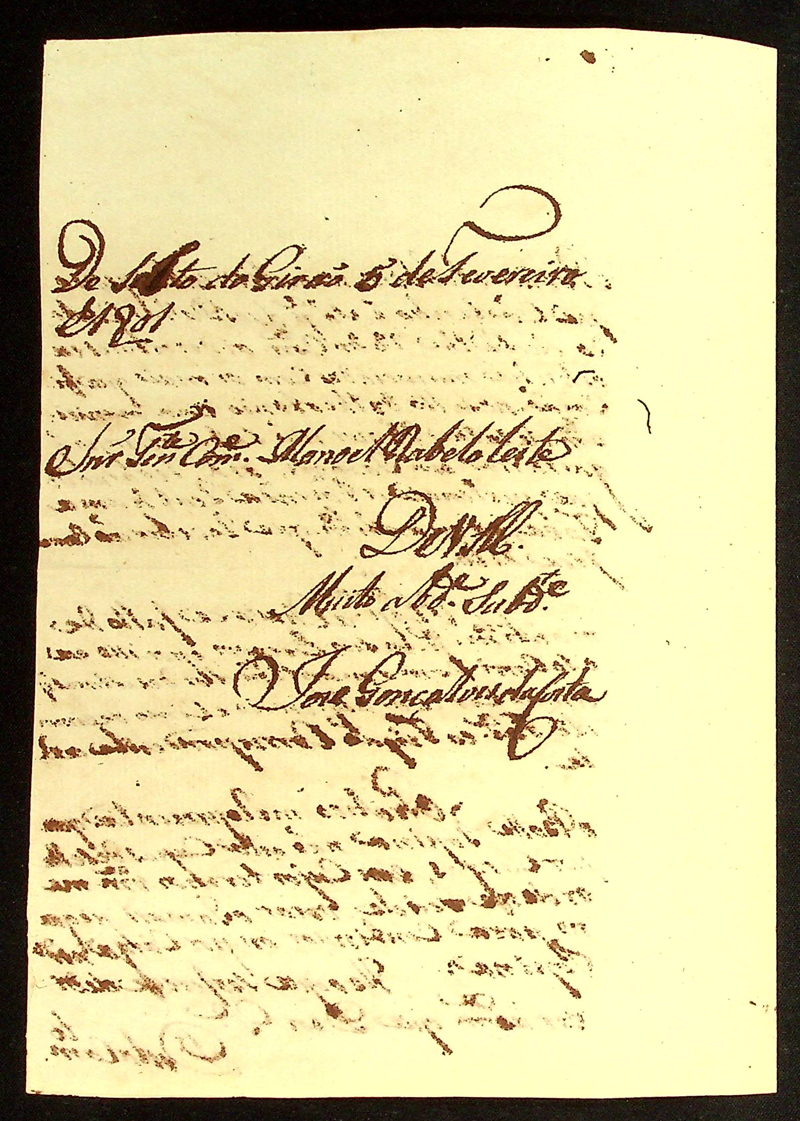 CARTA de José Gonçalves da Costa ao Tenente Comandante Manoel [Rabelo] Leite.