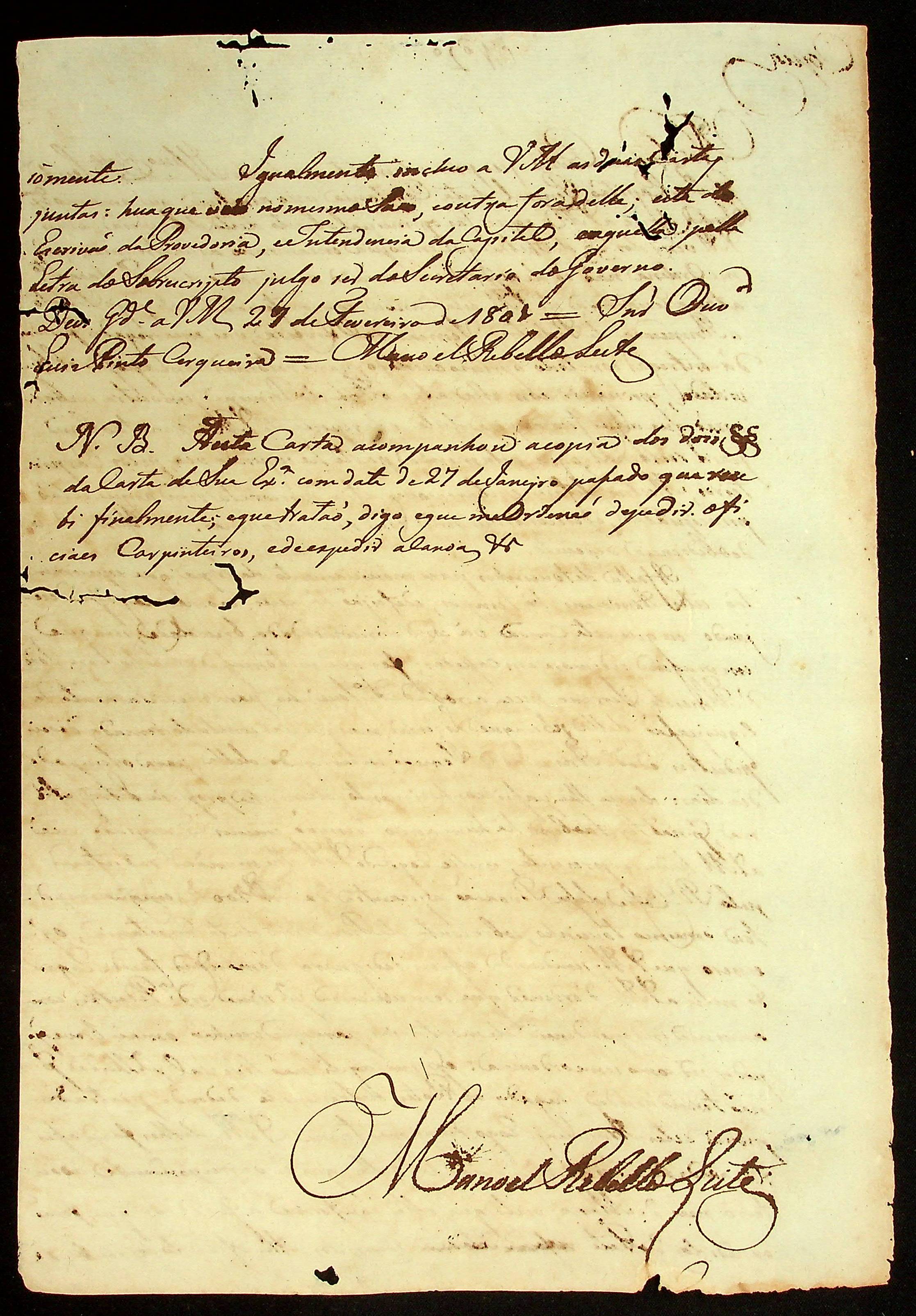 CARTA (cópia) do [Ajudante e Comandante] Manoel [Rabelo] Leite ao Ouvidor Geral Luís Pinto Cerqueira.