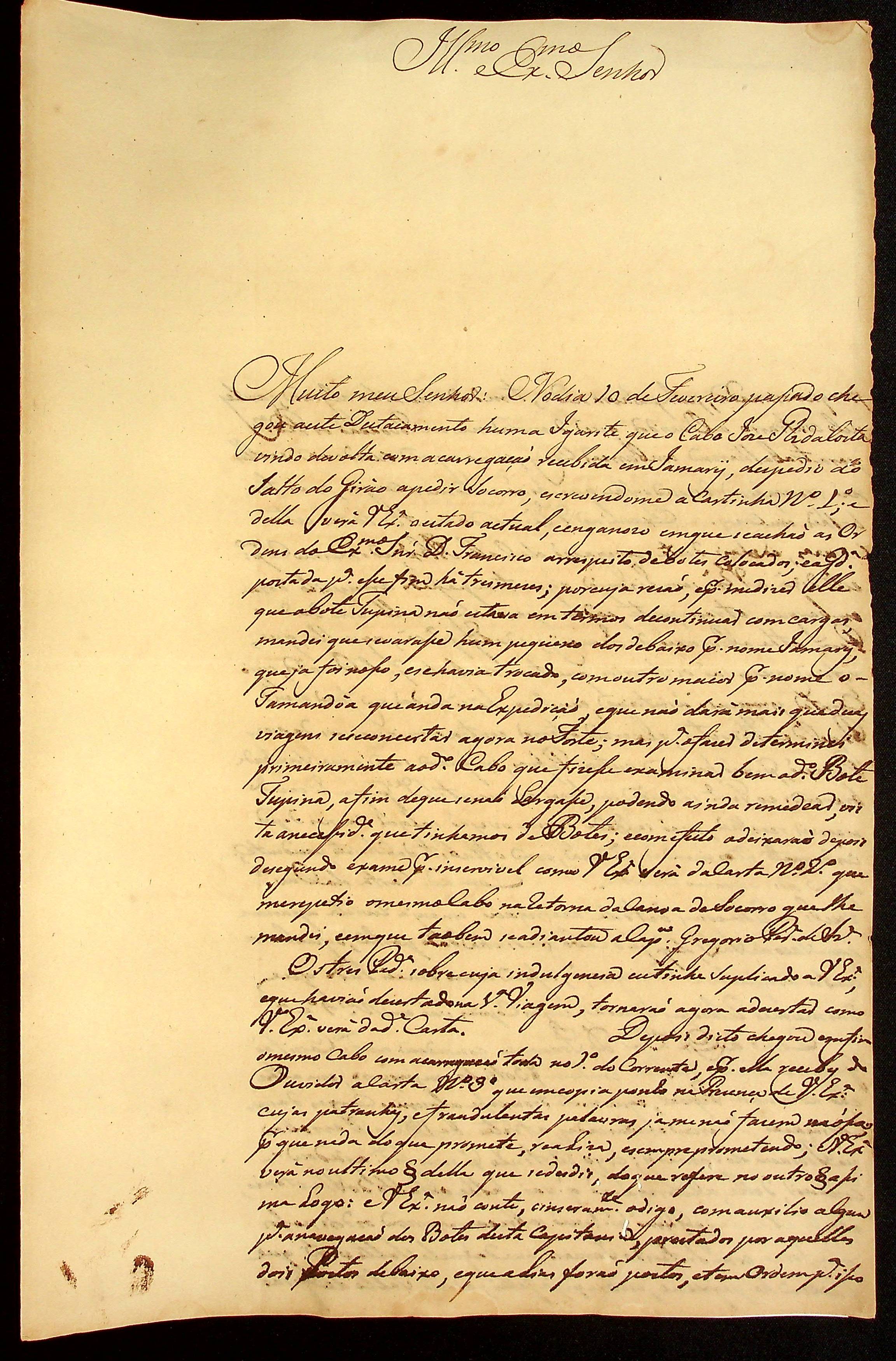 CARTA de Manoel [Rabelo] Leite ao Governador e Capitão-General da Capitania de Mato Grosso Caetano Pinto de Miranda e Montenegro.