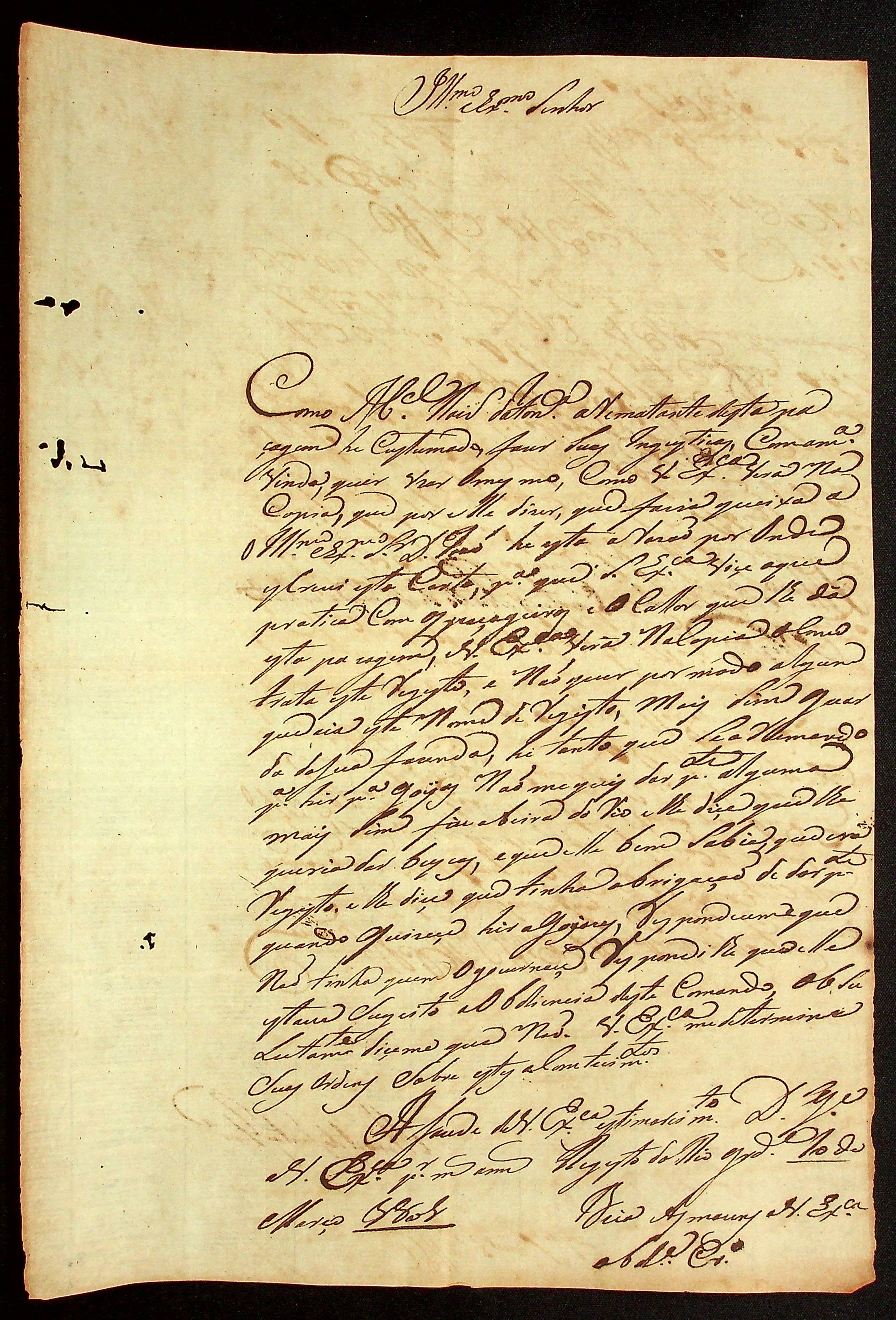 CARTA de Manoel dos Santos Ferreira ao Governador e Capitão-General da Capitania de Mato Grosso Caetano Pinto de Miranda e Montenegro.
