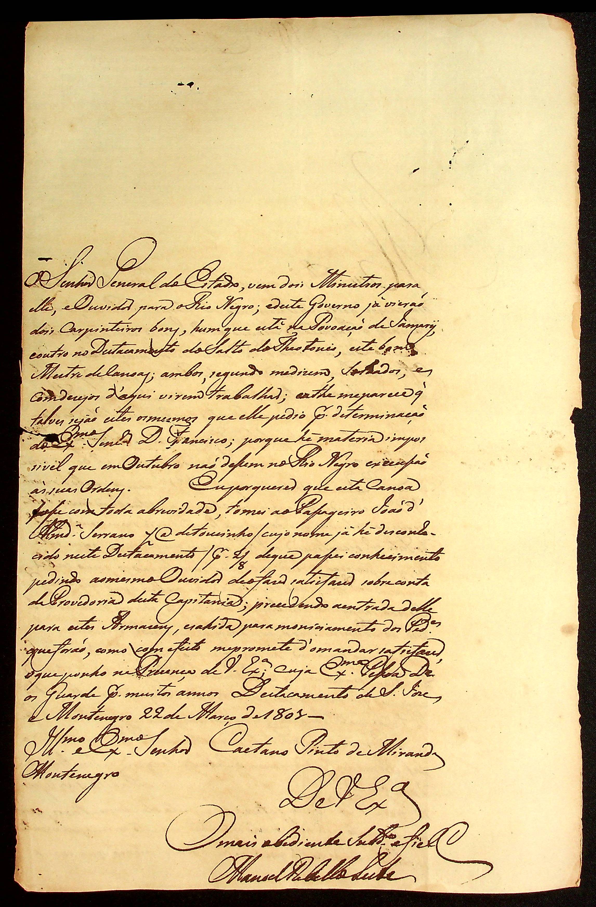 CARTA do Tenente Comandante Manoel [Rabelo] Leite ao Governador e Capitão-General da Capitania de Mato Grosso Caetano Pinto de Miranda e Montenegro.