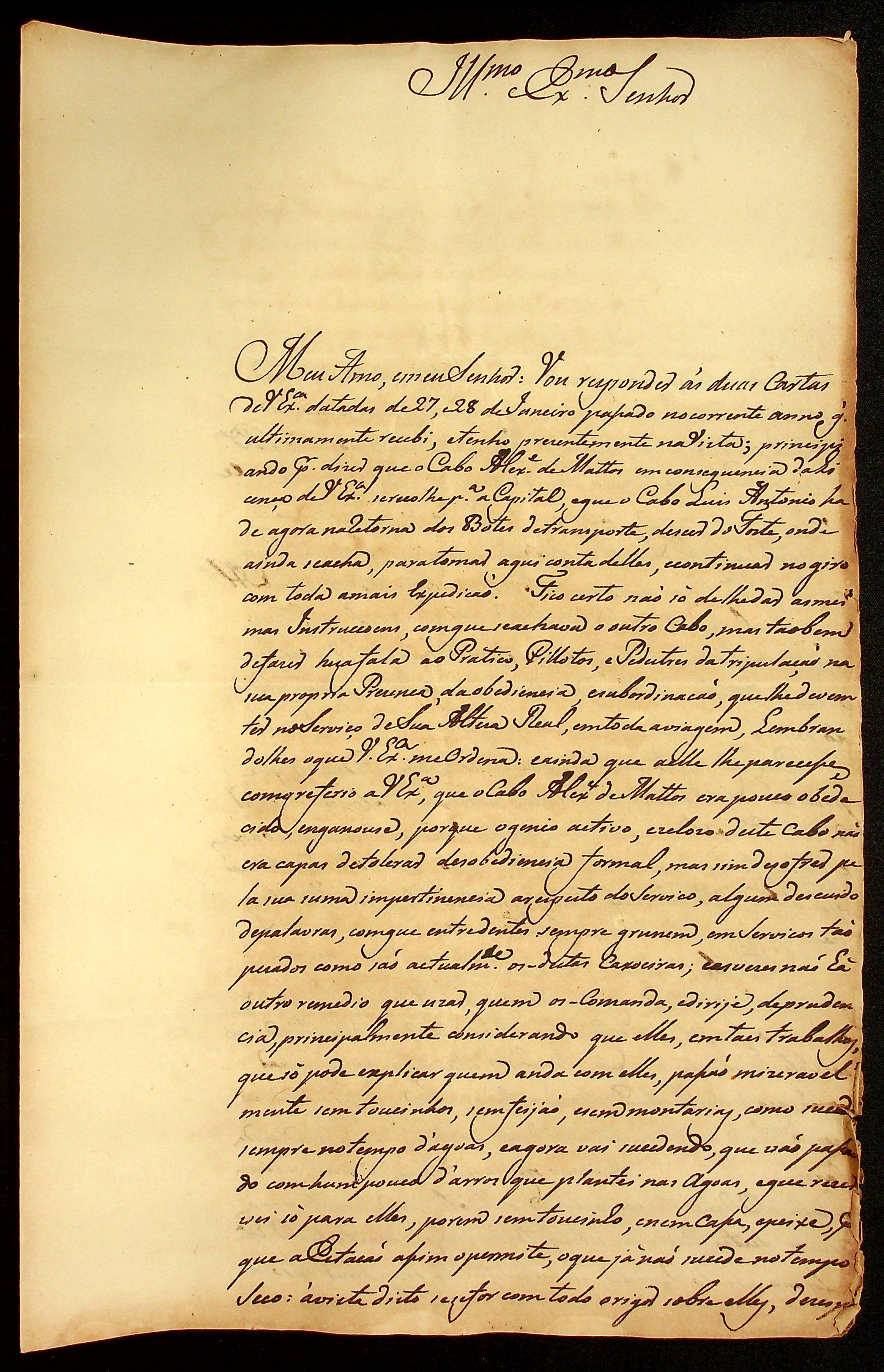 CARTA do [Ajudante e Comandante] Manoel [Rabelo] Leite ao Governador e Capitão-General da Capitania de Mato Grosso Caetano Pinto de Miranda e Montenegro.