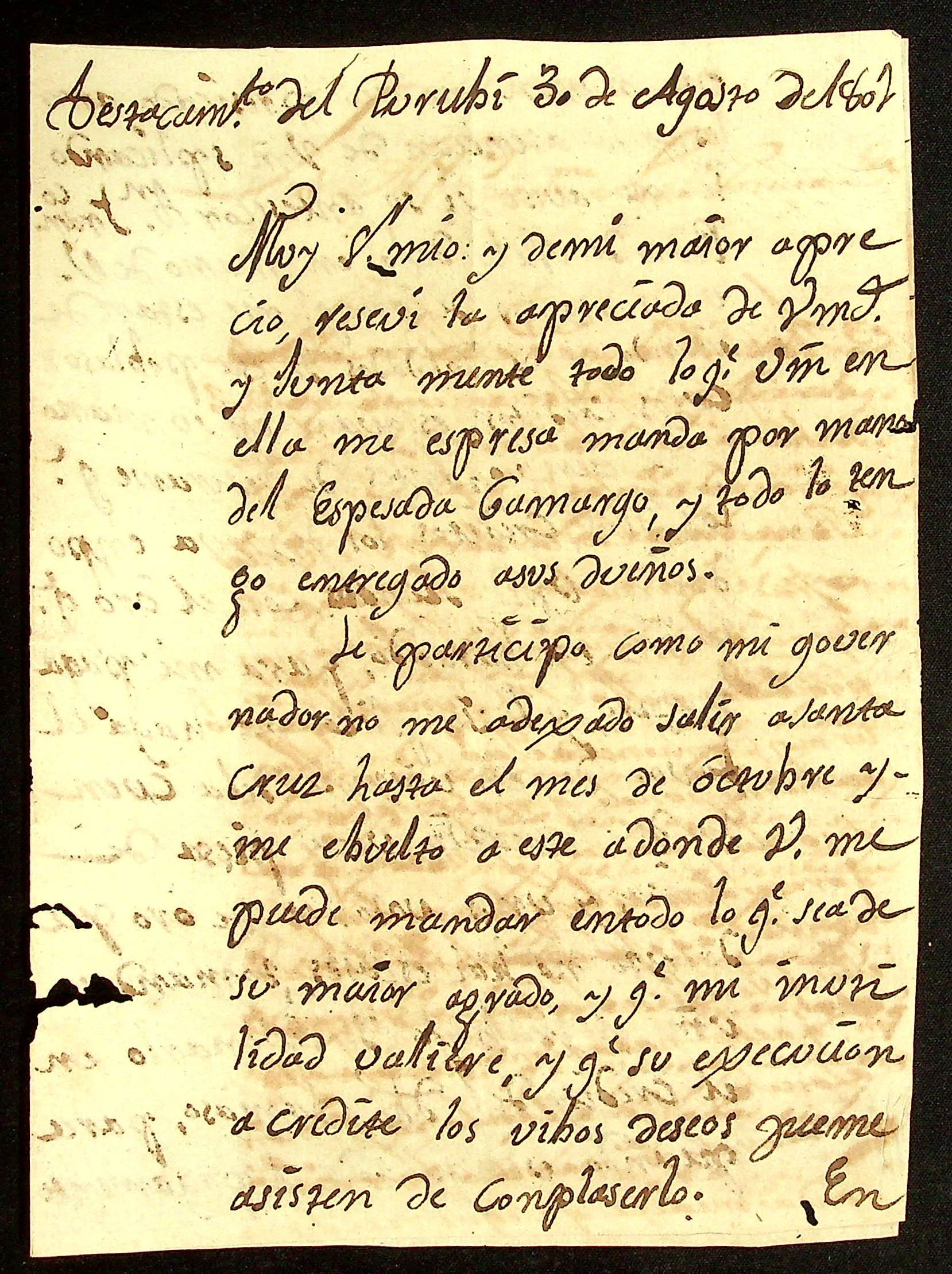 CARTA de Juan Maria de Castro ao Alferes João Pereira Leite.